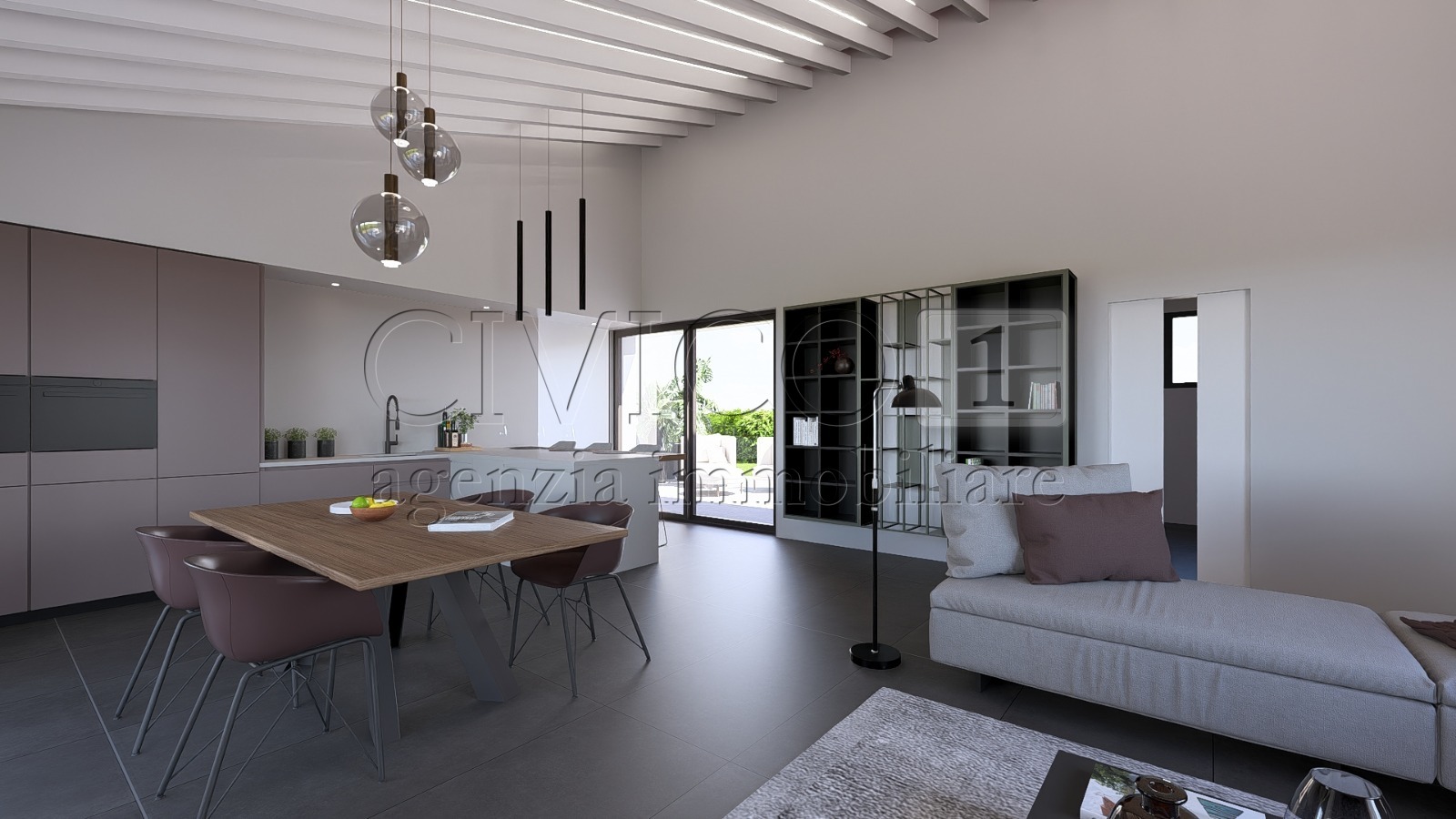 Larchitettura, contemporanea ed elegante, è valorizzata da linee dinamiche e da tre ampie vetrate nella zona living, che assicurano grande luminosità e una piacevole continuità tra spazi interni ed esterni.