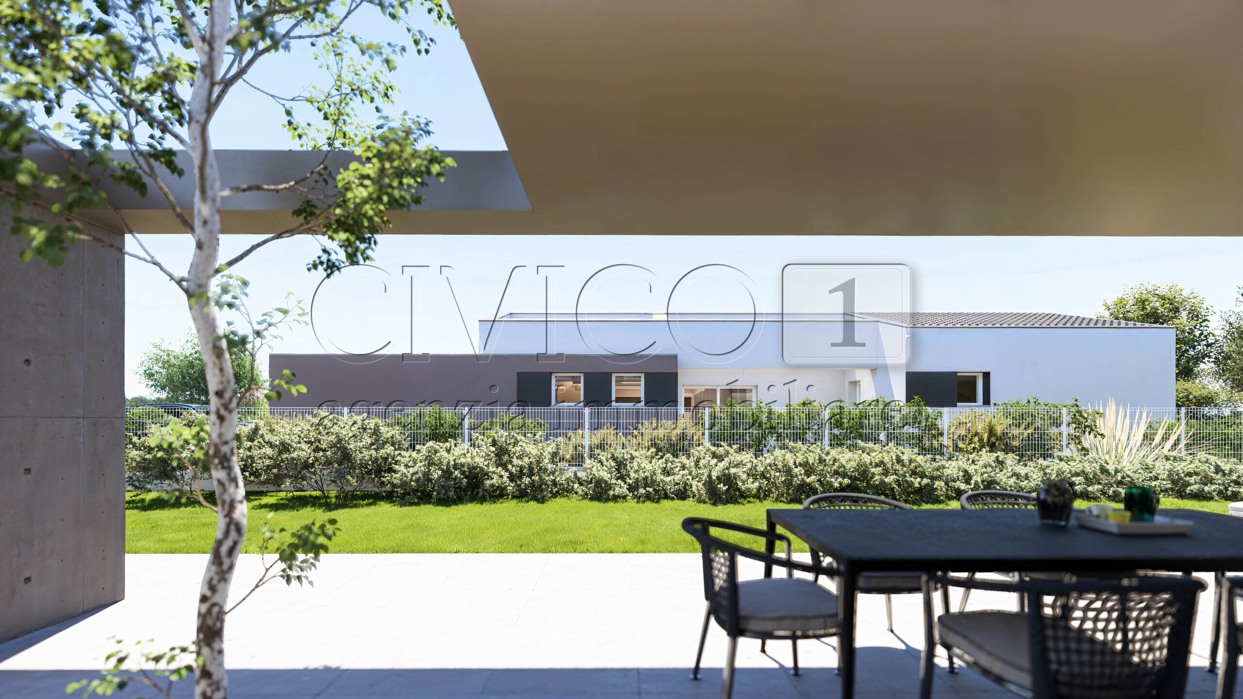 Larchitettura, contemporanea ed elegante, è valorizzata da linee dinamiche e da tre ampie vetrate nella zona living, che assicurano grande luminosità e una piacevole continuità tra spazi interni ed esterni.