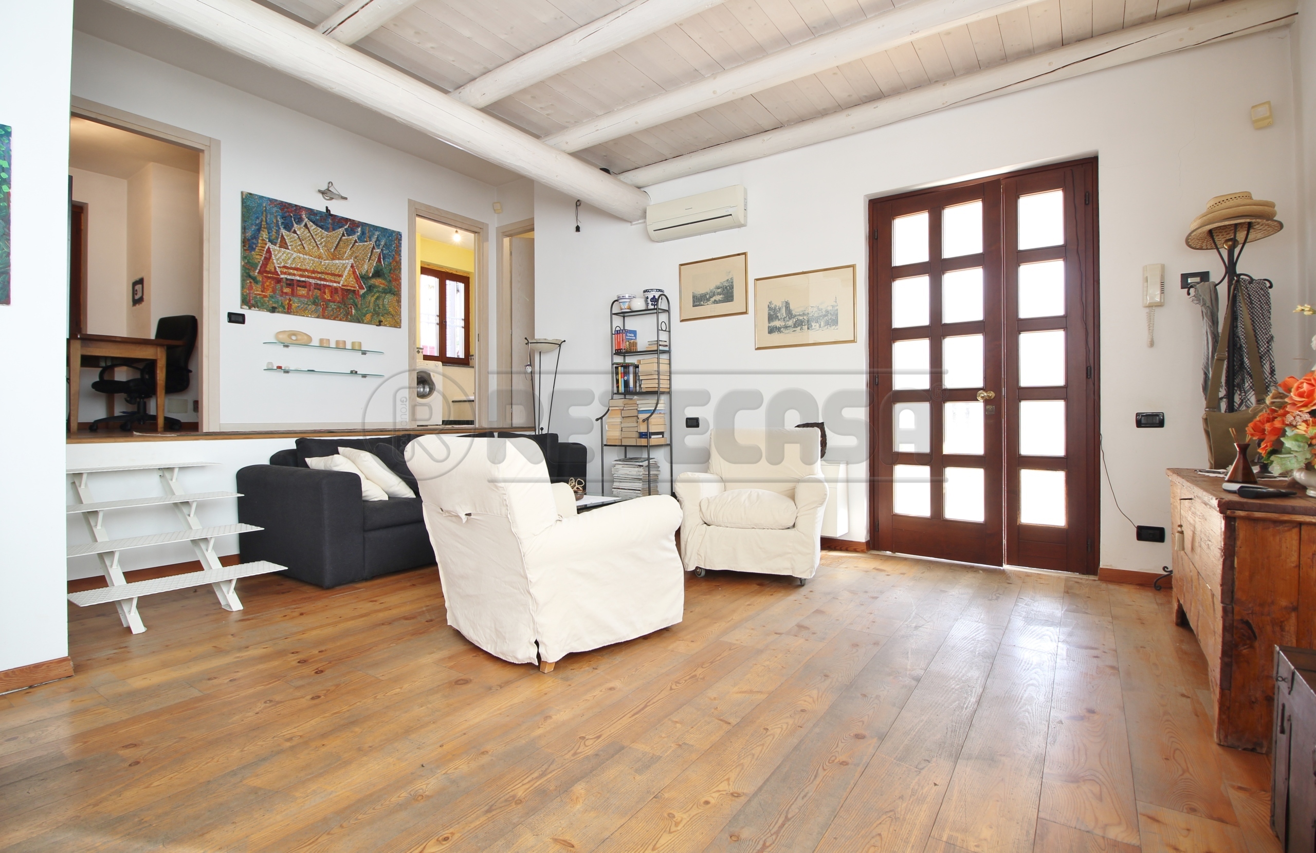 Entrambi gli immobili godono di un ingresso indipendente dal portico verandato comune.