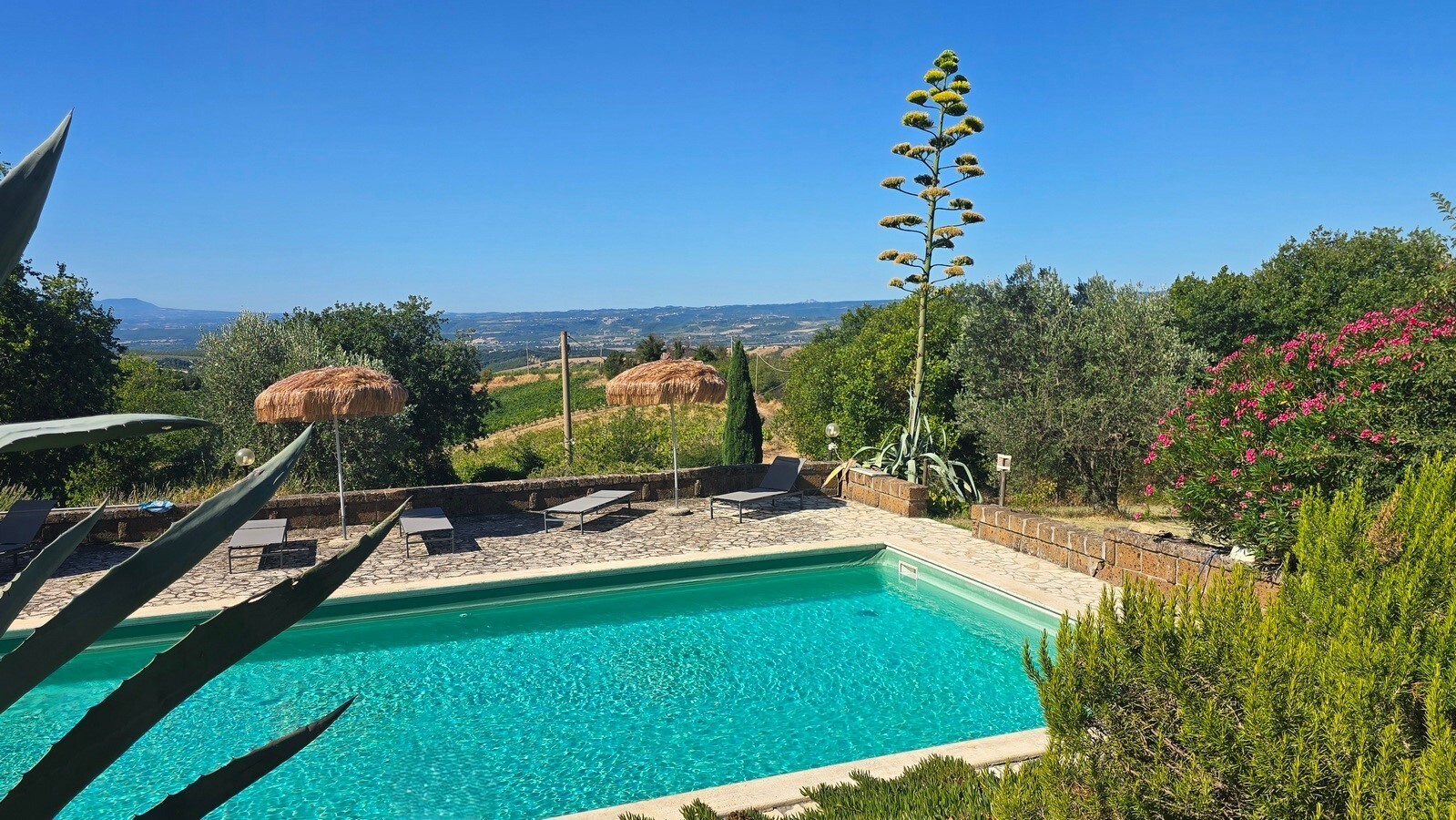 Costruito nel 2005, possibilità di ampliare 80mq. Esterno I casali sono circondati da circa 1 ha di giardino recintato con 2 cancelli automatici con on impianto di videosorveglianza, area parcheggi, una tartufaia di nero estivo, un'ampia area verde ben curato con prato verde, un gazebo di 4x5m, vari alberi di 40anni e oltre (cipressi, querce, olmi, olivi, aceri e alberi da frutta). L'intera area è servita da illuminazione e da otto fontane per l'irrigazione, e di fronte ai due casali troviamo la piscina (12x6 m, altezza 1,50 m) con un ampio solarium.