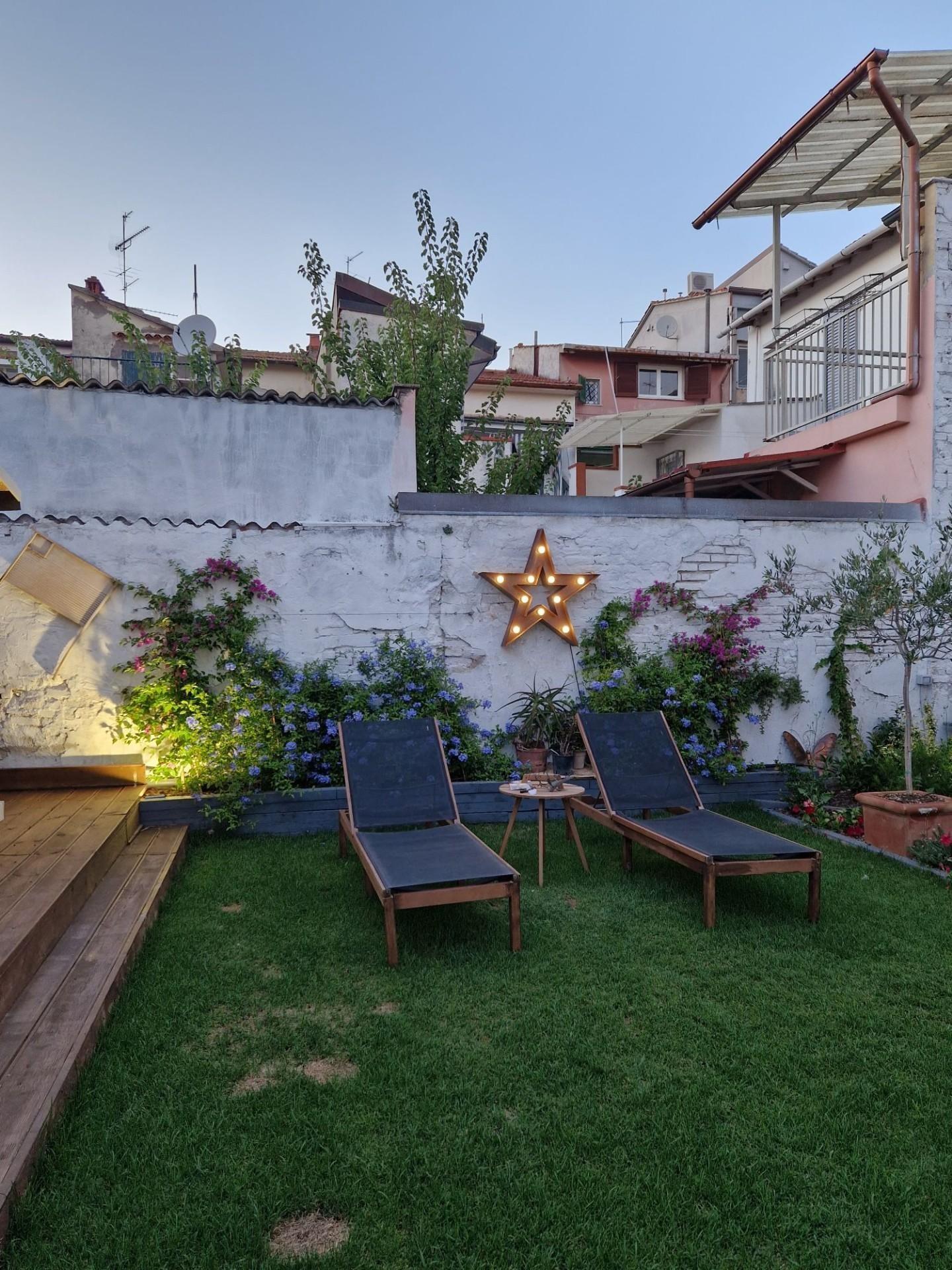 Bella casa viareggina di ampie dimensioni, disposta su tre livelli con una superficie di circa mq. 100 a piano oltre a giardino interno di circa mq. 160 con terrazza di mq. 40 e serra solare tutta in vetro, un ripostiglio per ricovero attrezzi nel giardino.