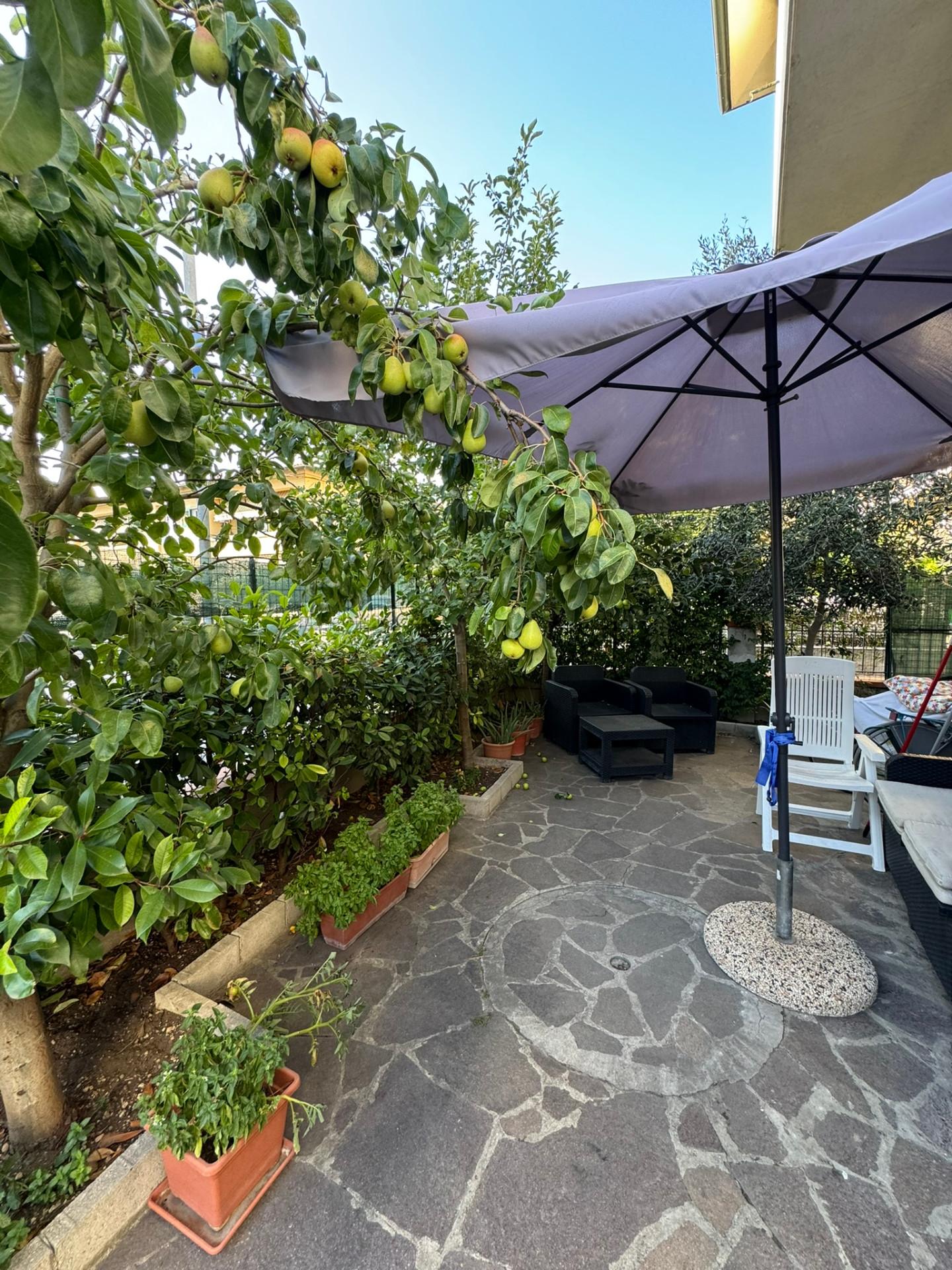 Costituiscono pertinenze esclusive oltre al garage e cantina, il giardino piastrellato con barbeque con gazebo . L' immobile è dotato di pannelli fotovoltaici batterie di accumolo.