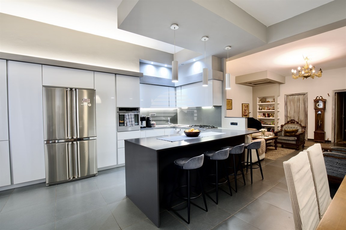 Caratteristiche principali: Ampio salone luminoso; Elegante cucina a vista con zona pranzo; Stanza studio funzionale; Tre camere da letto matrimoniali; Cinque servizi igienici: tre con doccia, uno con vasca, il quinto da ripristinare; Terrazzo; Magazzino di pertinenza.