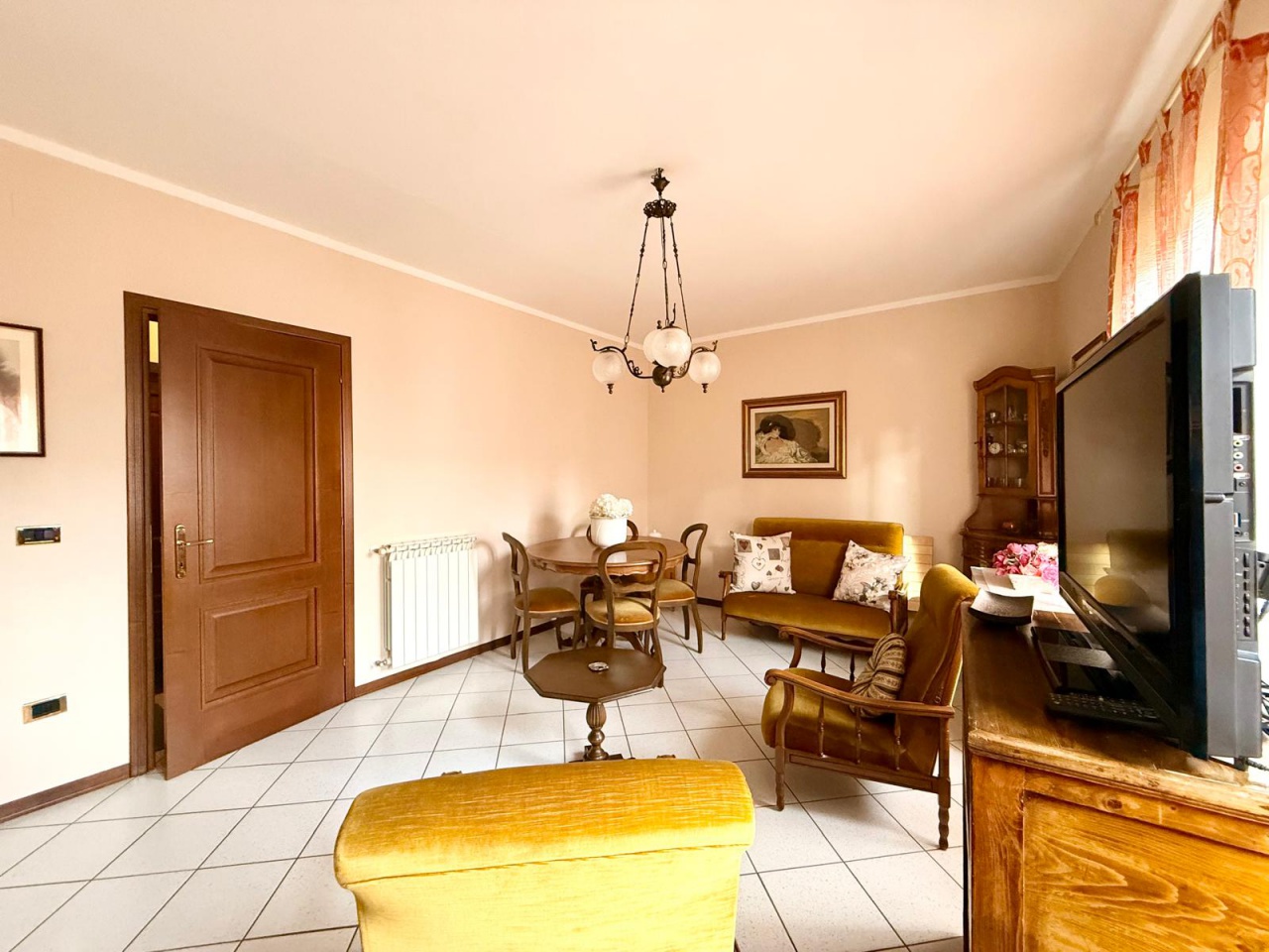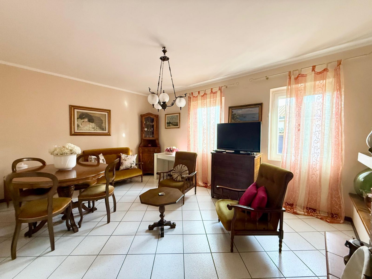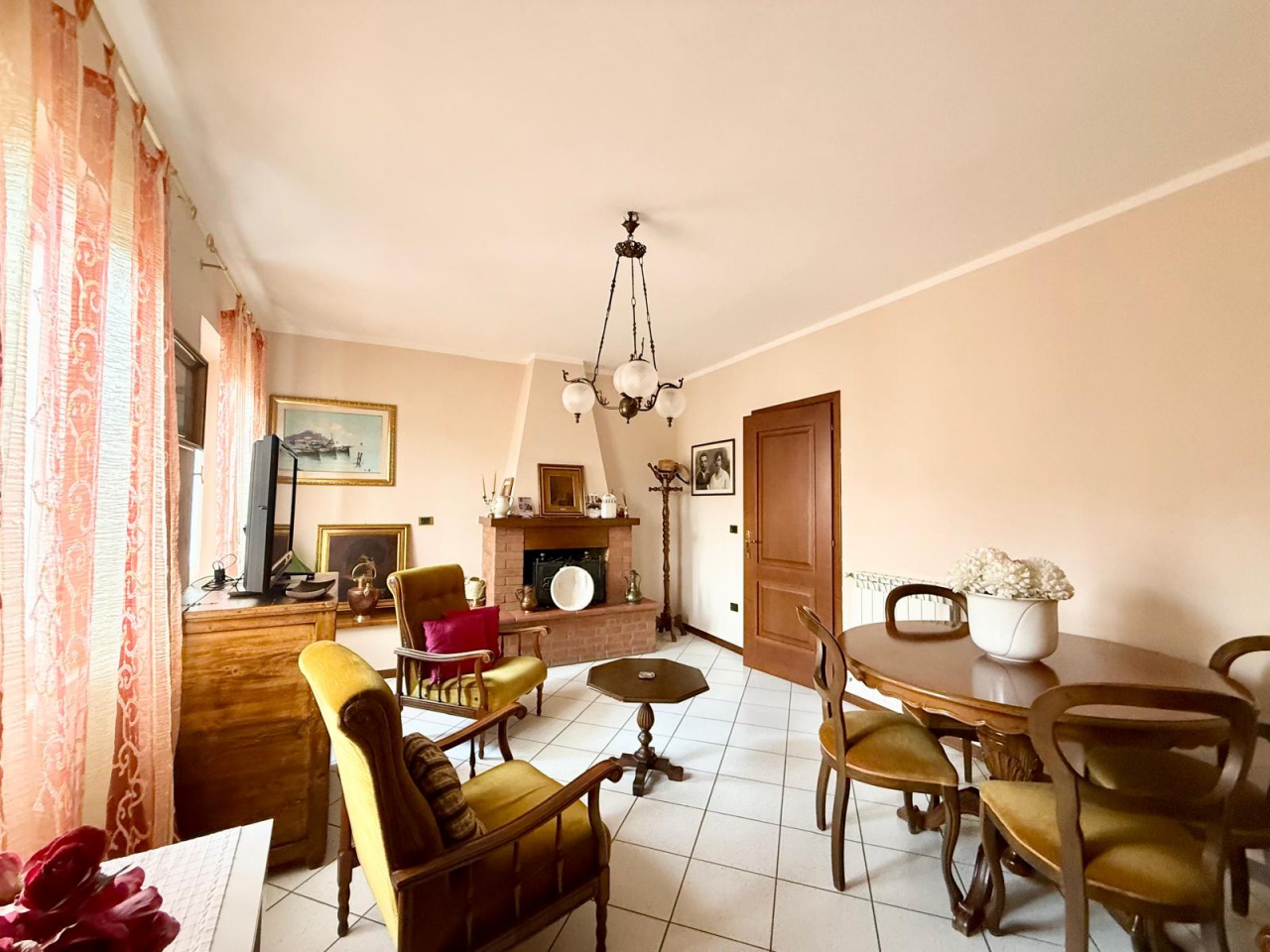 L'abitazione si trova al 1 piano ed è composta da terrazzo d'ingresso, disimpegno, ampio soggiorno con accessorio camino, cucina pranzo, tre camere due bagni finestrati e ripostiglio.