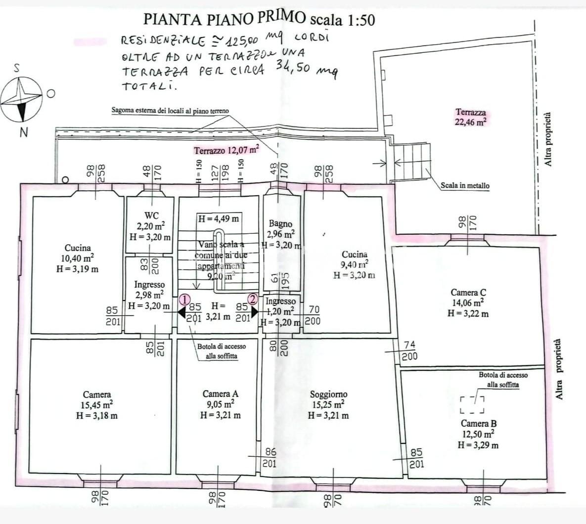 Piano primo 2 APPARTAMENTI CON TERRAZZA DI MQ 35, UNO composto da: ingresso, soggiorno-cucina con accesso al terrazzo, camera matrimoniale e bagno finestrato.