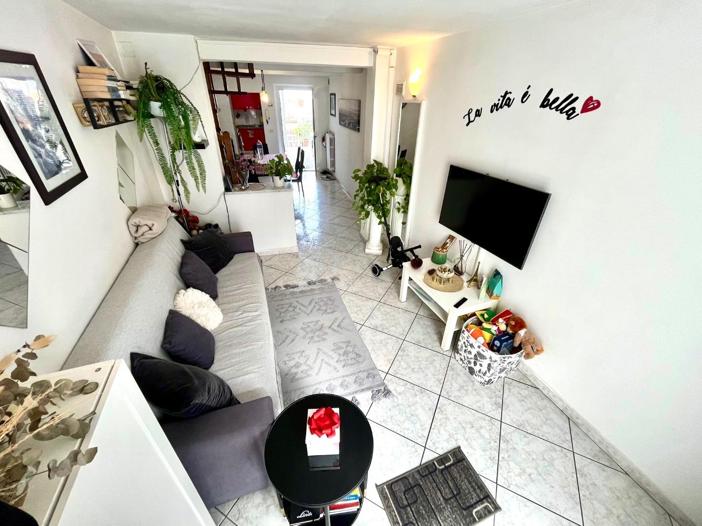 L'abitazione è poi composta al piano terra da soggiorno, sala da pranzo e cucinotto; al piano primo da camera matrimoniale, disimpegno/studio e bagno finestrato con doccia; al piano secondo ed ultimo da disimpegno, camera matrimoniale, cameretta e ulteriore bagno finestrato con doccia.