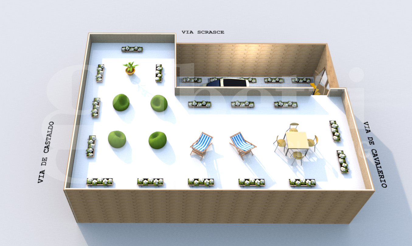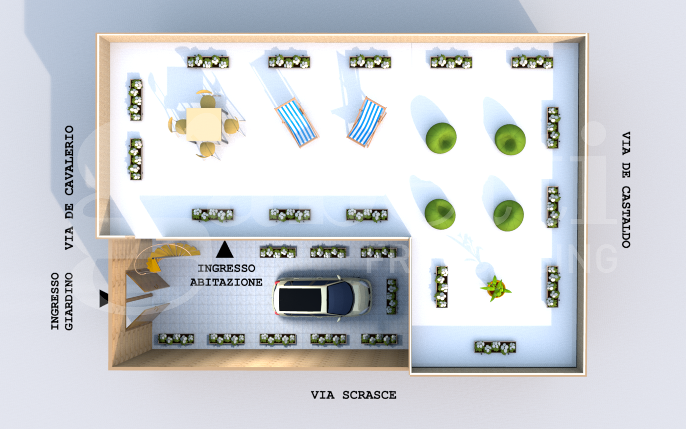 Si propone di seguito ipotesi progettuale mediante intervento di ristrutturazione edilizia e riqualificazione energetica, con annessi benefici fiscali, e possibilit di trasformare lattuale struttura in funzionale e comoda unit abitativa indipendente, con accesso da Via de Cavalerio, caratterizzata da: a) accogliente open space, dotato di confortevole camino, oltre che cucina abitabile; b) tre camere da letto, di cui quella matrimoniale con affaccio sul giardino interno e le altre due con affaccio sullampia e tipica scalinata di Via de Castaldo; c) due bagni, dei quali quello di servizio corredato di finestra per tetti piani con vetro curvo e di spazio anche per i classici elettrodomestici, quali lavatrice e asciugatrice; d) terrazza abitabile di mq 100 , accessibile attraverso scala a chiocciola o affine, per piacevoli e spensierati momenti di relax; e) ampio e luminoso giardino, da utilizzare alloccorrenza anche quale sede di posto auto e/o per linstallazione di pergola fotovoltaica.