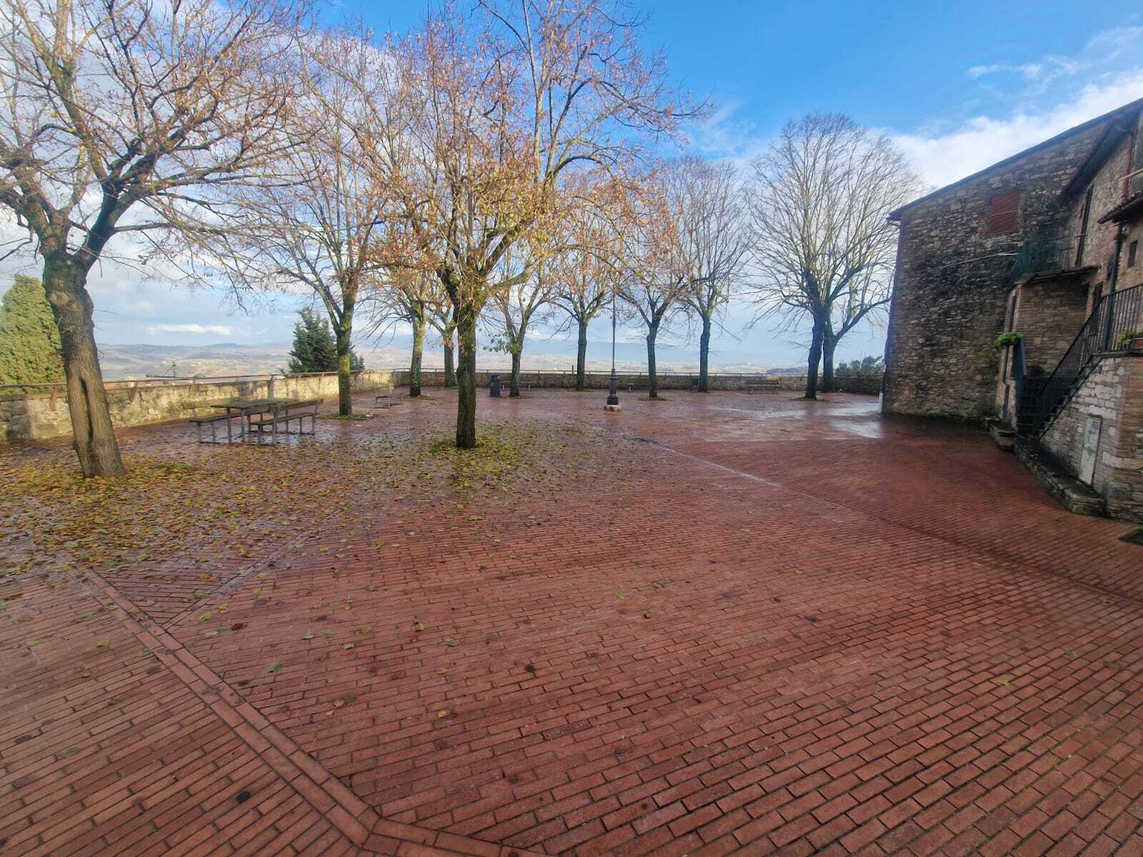 Lingresso principale dellappartamento si affaccia su una graziosa piazzetta comunale provvista di panchine in quanto dotata di un affaccio molto panoramico sulle colline intorno Todi. Dal portone di entrata si accede ad un soggiorno, due camere, una cucina e un bagno.