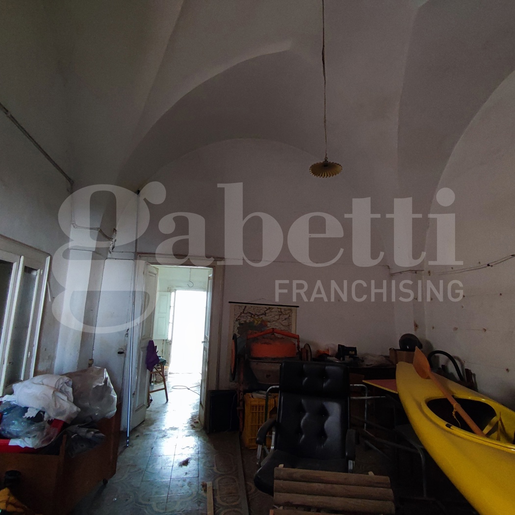 L'immobile, avente una superficie coperta complessiva di circa 150,00 mq, si compone di tre vani con copertura a volta 'a stella' al Piano Terra, ognuno avente ingresso indipendente dalla strada e caratterizzati dalla presenza della tradizionale pavimentazione in cementine colorate, bagno, un piccolo scoperto avente accesso indipendente da strada e scala che conduce sul lastrico solare, dove troviamo un altro vano con soppalco, attualmente allo stato semi rustico.
