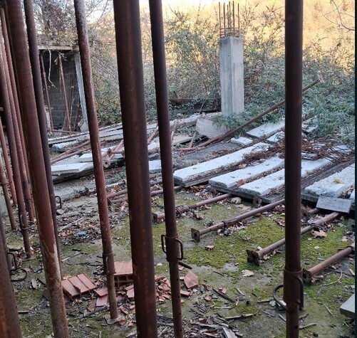 Appezzamento di terreno con costruendo complesso residenziale, costituito da un fabbricato di tre piani, previsto in progetto, ove erano previsti 10 appartamenti, un piano fondi adibito a boxes, cantine, parti comuni, ed aree esterne pertinenziali, senza agibilita, con sanatorie e oneri di urbanizzazione da perfezionare.