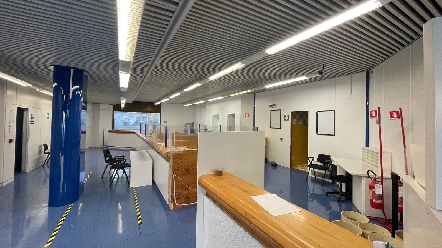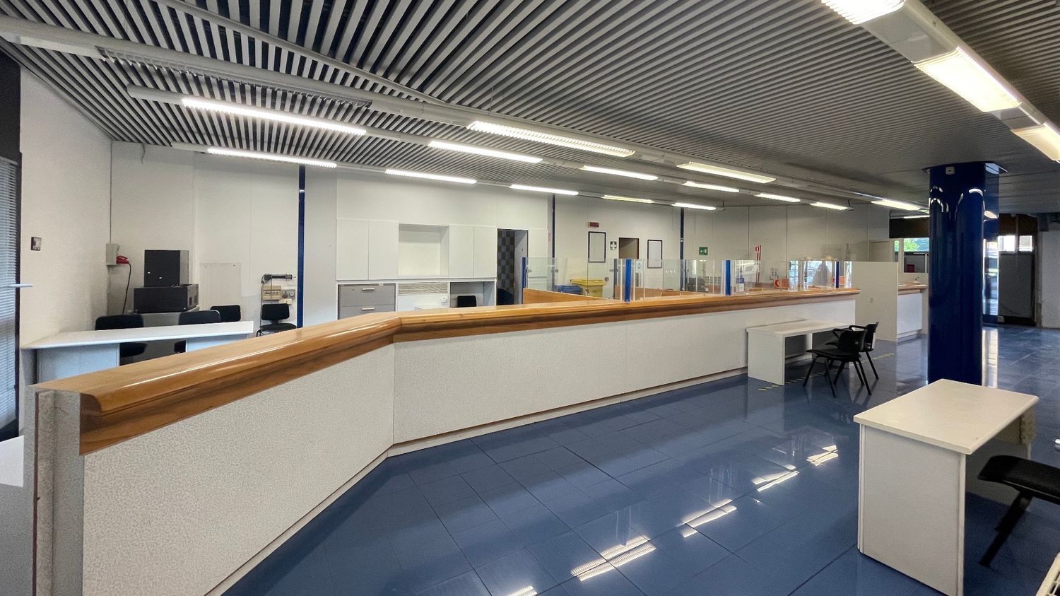 Composto da ampio ingresso vetrato con porte scorrevoli automatiche, ampio vano centrale arredato con varie postazioni, tre stanze ad uso ufficio, archivio, stanza con casseforti, due bagni e locale tecnico.