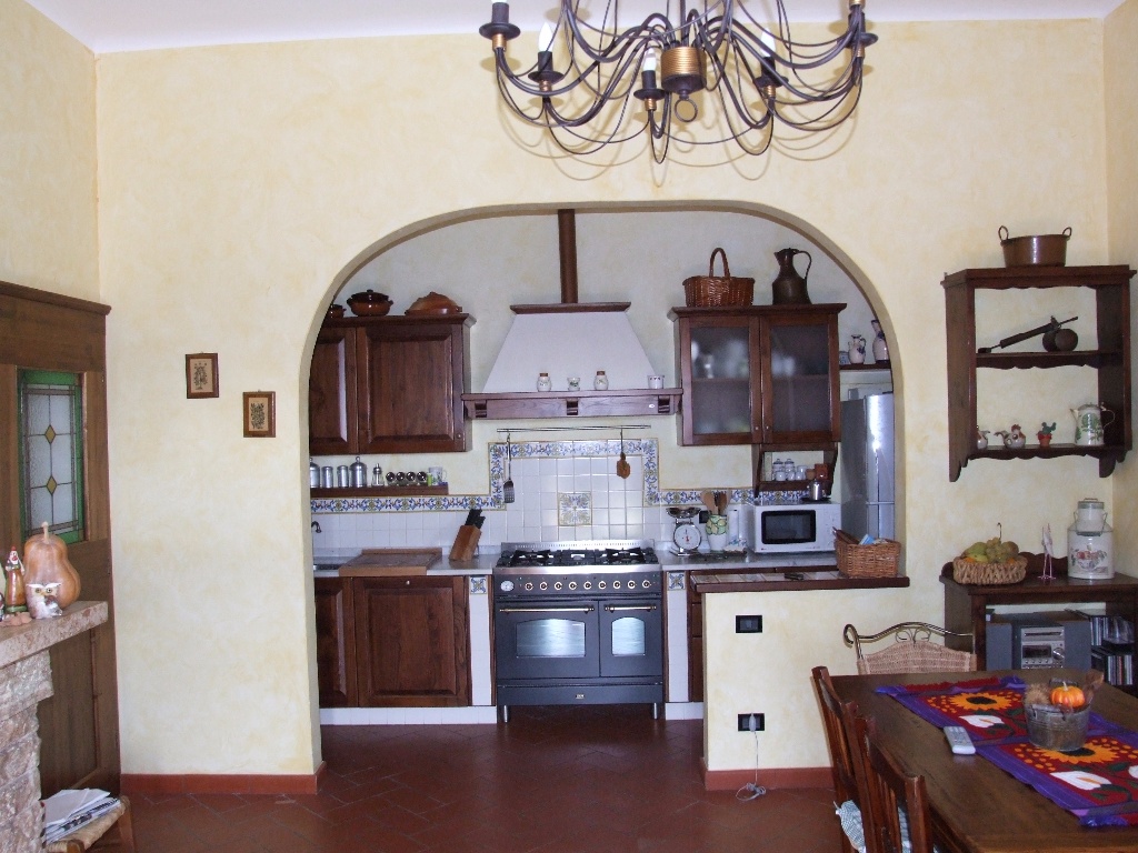 Al suo arrivo da ampio cancello carrabile e pedonale ci accoglie il grande giardino di circa 1000 mq. curato in tutti i suoi particolari e ben tenuto con barbeque per tipiche cene all'aperto, percorrendo il giardino arriviamo all'ingresso dove ci accoglie una bellissima veranda, ingresso in soggiorno, disimpegno, bagno, sala da pranzo con angolo cottura e camino, salendo l'ampia scala esclusiva in pietra, troviamo un ampio ingresso con due camere matrimoniali, altra camera media e bagno.