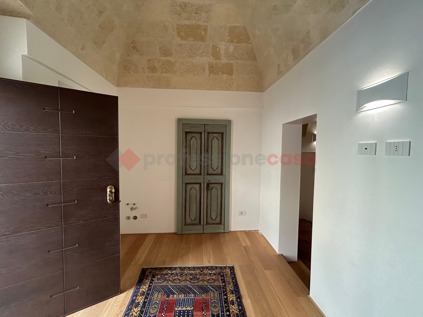Lingresso si apre su un accogliente ambiente con caratteristiche volte a cielo di carrozza con pietra a vista.
