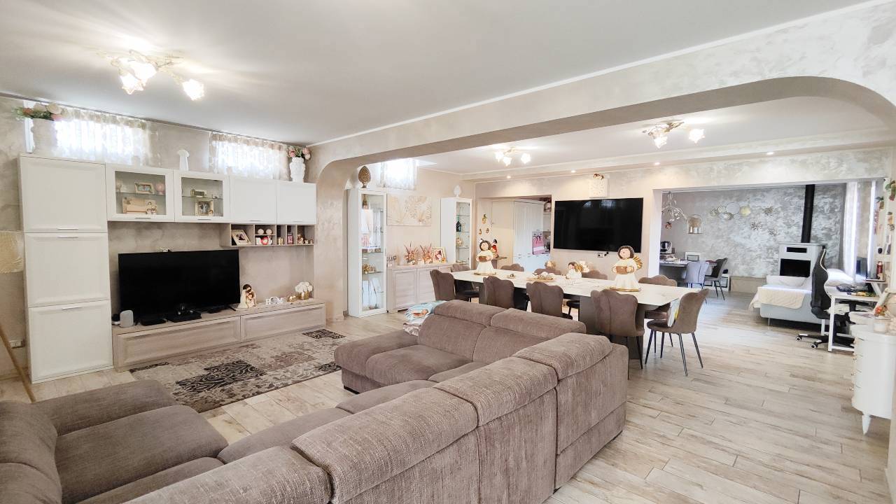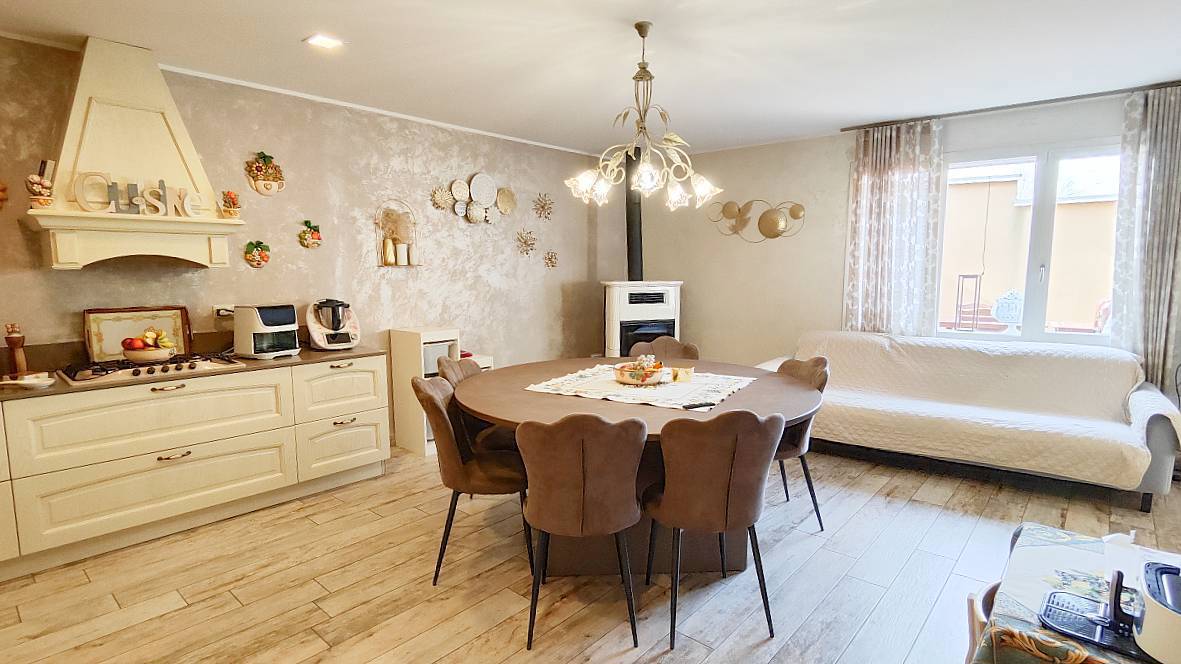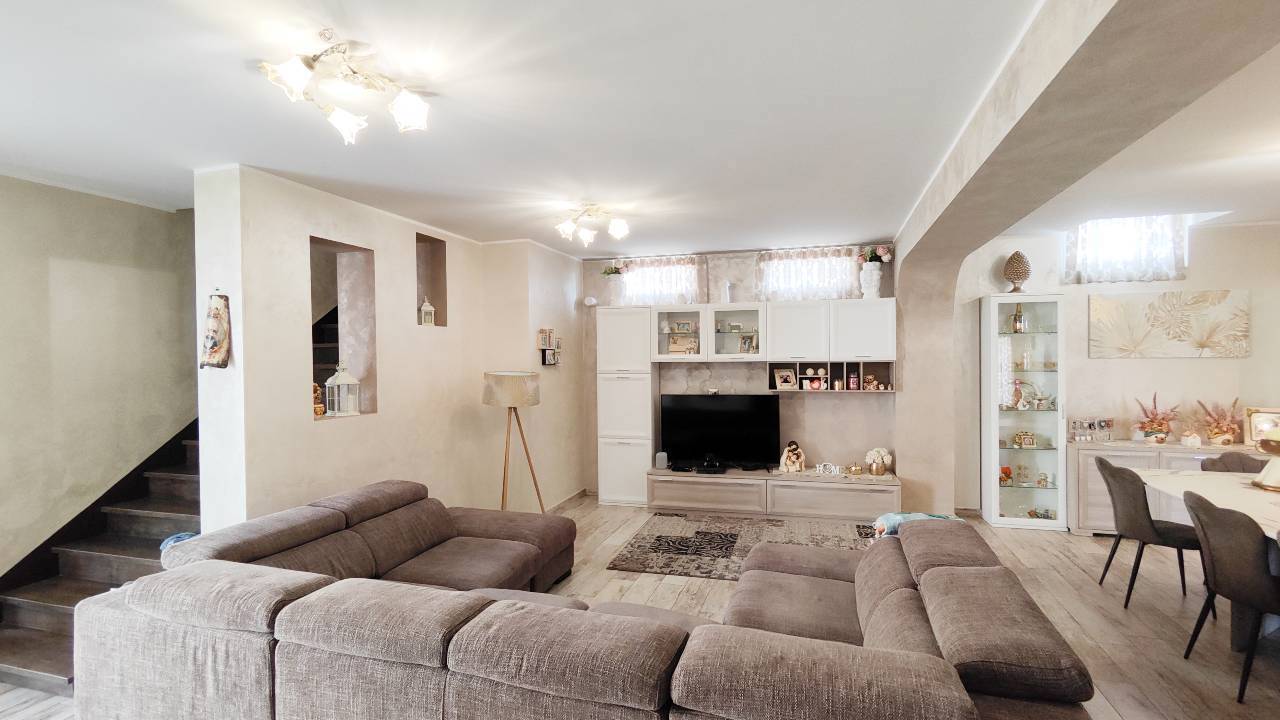 Al piano terra, un ampio e luminoso soggiorno si unisce a una cucina moderna, perfetta per le tue cene in famiglia o con gli amici.