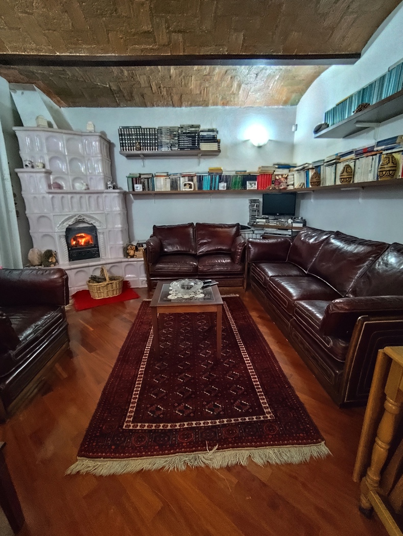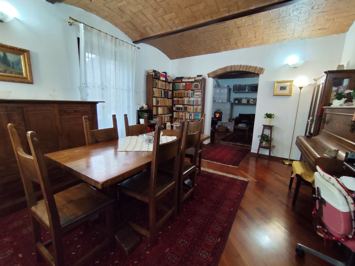 Piano terra: dotato di doppio ingresso, composto da una zona living di circa 40 mq con zona pranzo e salotto con stufa Stube tirolese, parquet in legno massello afrormosia e soffitto con voltini in ***.*******.** il piano terra una cucina abitabile di circa 20 mq con lavanderia annessa ed un bagno con pavimenti in cotto fatto a ***.*******.** alti soffitti con voltini in mattoni a vista fatti a ***.*******.** pavimentazione nella zona living in parquet di legno massello mentre negli altri ambienti in cotto fatto a mano. Piano primo: mediante una scala in iroko massello si raggiunge il primo piano composto da tre ampie camere matrimoniali (due di mq. 20 ciascuna, ed una di circa di mq. 16), due bagni ed un balconcino.
