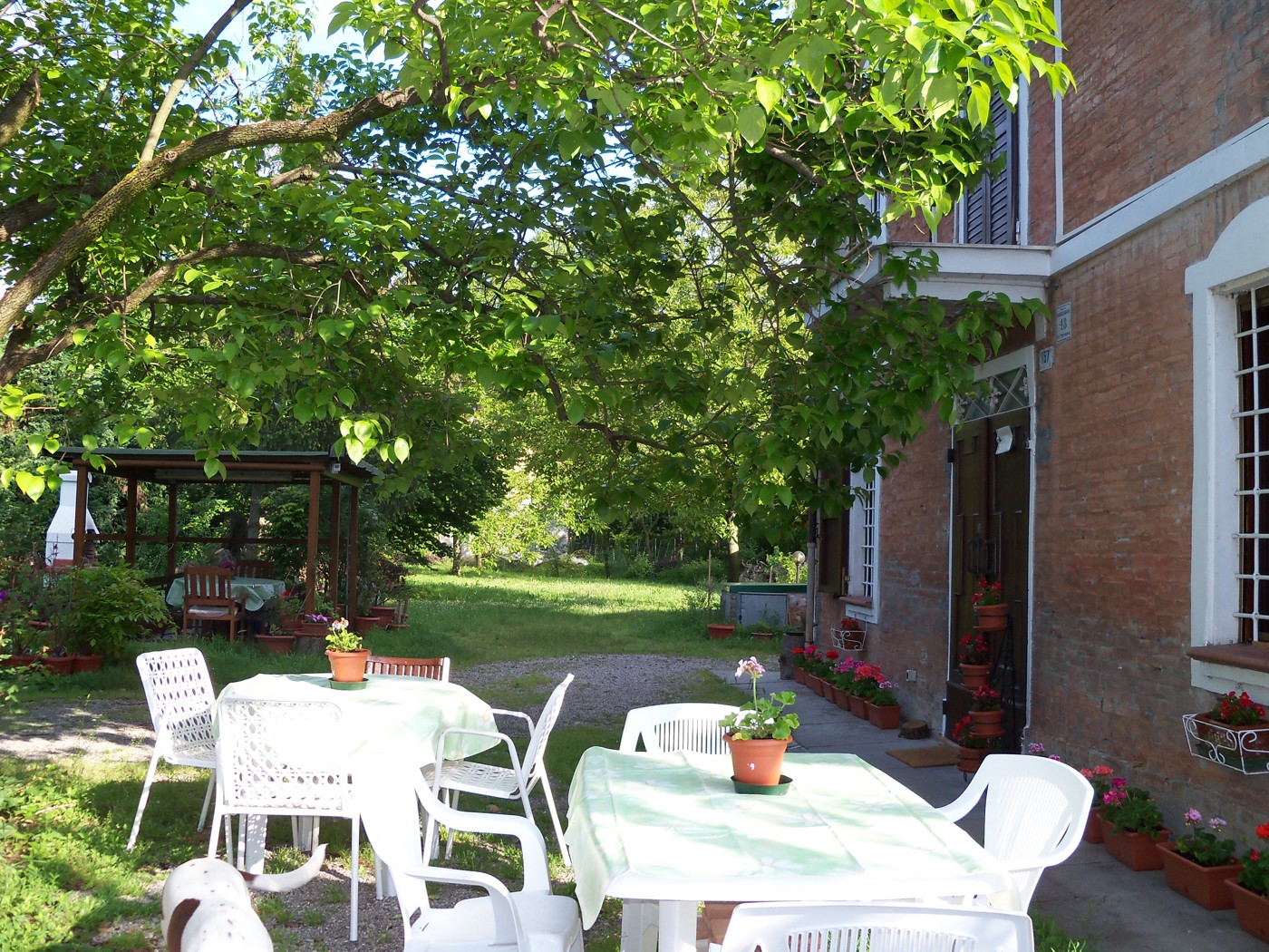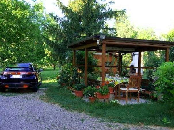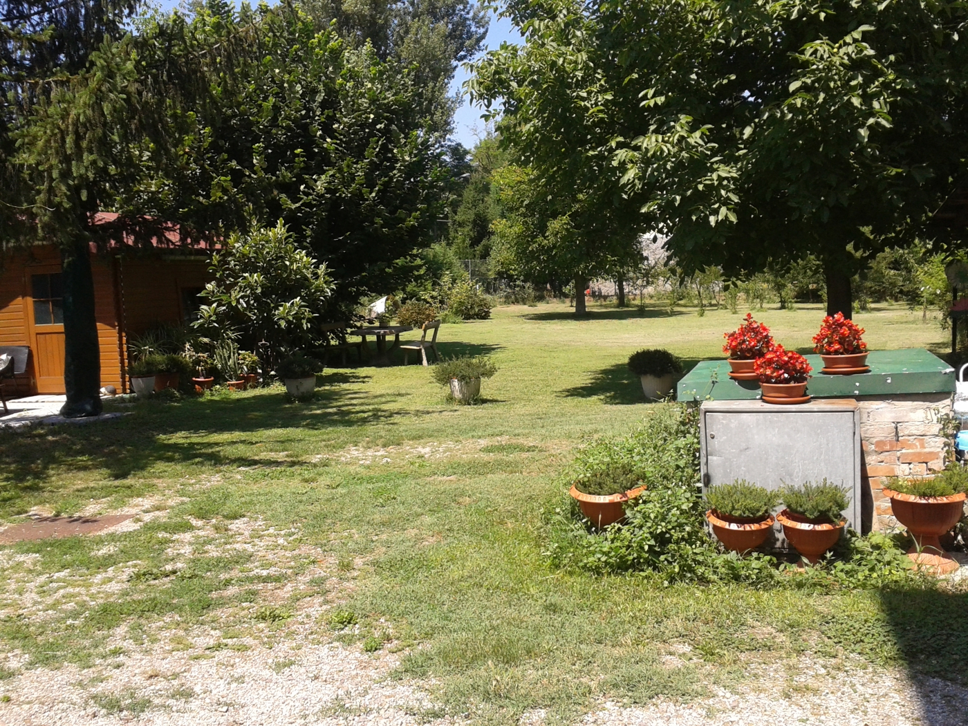Nel giardino sono presenti due garages,la centrale termica, due tettoie per il ricovero di mezzi ed una casetta in legno utilizzabile come stanza hobby o per il ricovero degli attrezzi, Nel garage piccolo presente anche una cantina seminterrata ideale per la conservazioni degli alimenti.