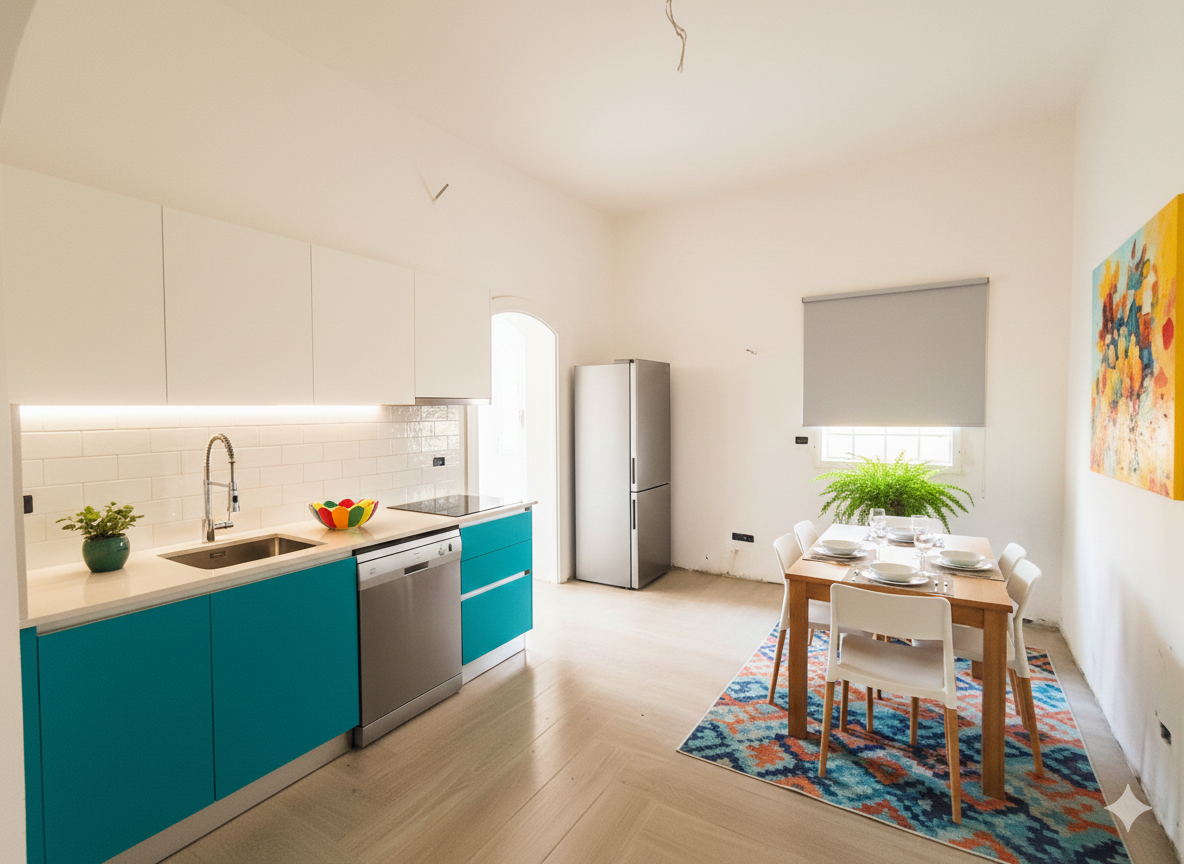 Gli spazi interni sono stati riprogettati per unire il fascino della struttura classica al comfort contemporaneo Si compone di ingresso in soggiorno luminoso, spaziosa cucina abitabile e bagno di servizio.