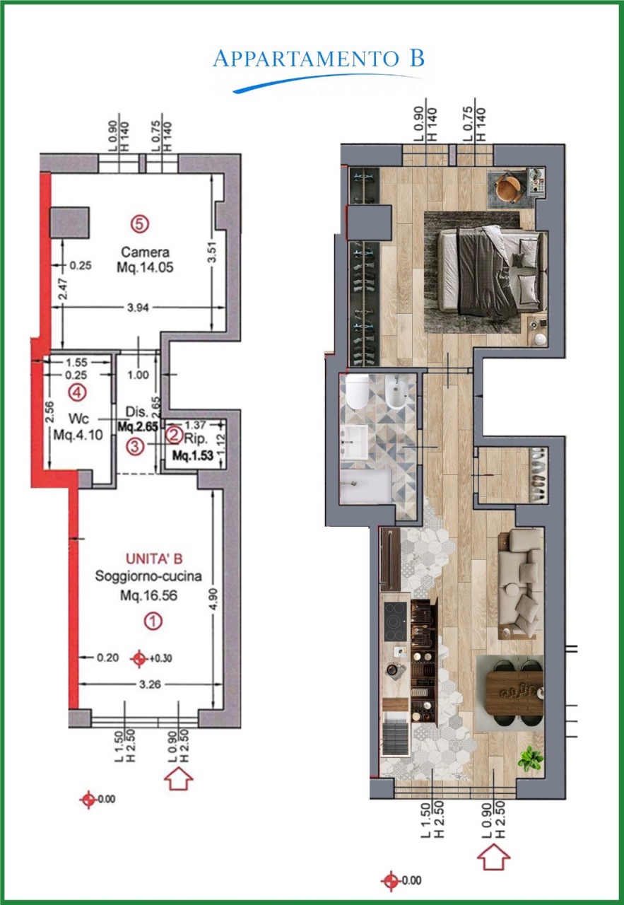 L'immobile è composto da soggiorno con angolo cottura, camera matrimoniale, bagno e ripostiglio.