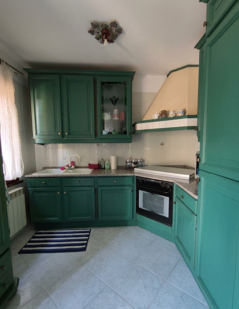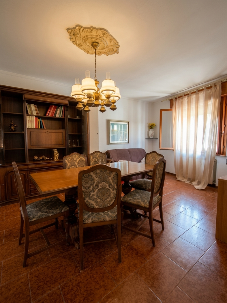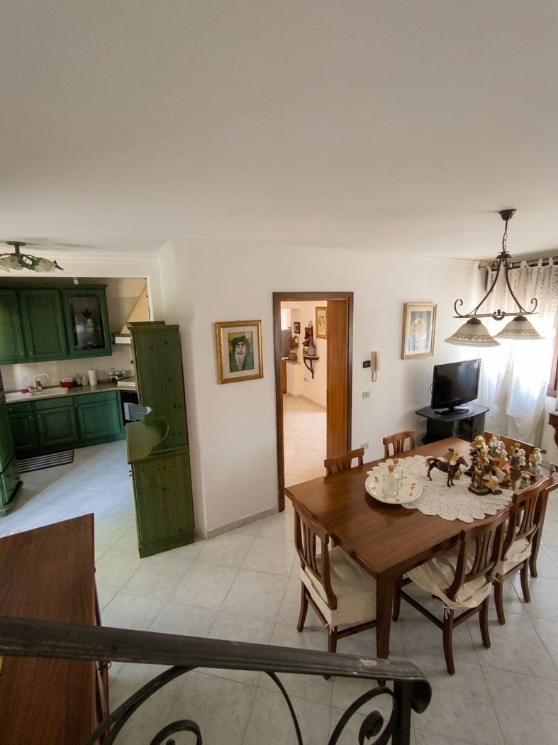 Il piano terra prosegue con una spaziosa sala da pranzo, caratterizzata da un vano scala a vista che conferisce personalit all'ambiente, e un cucinotto separato perfettamente organizzato.
