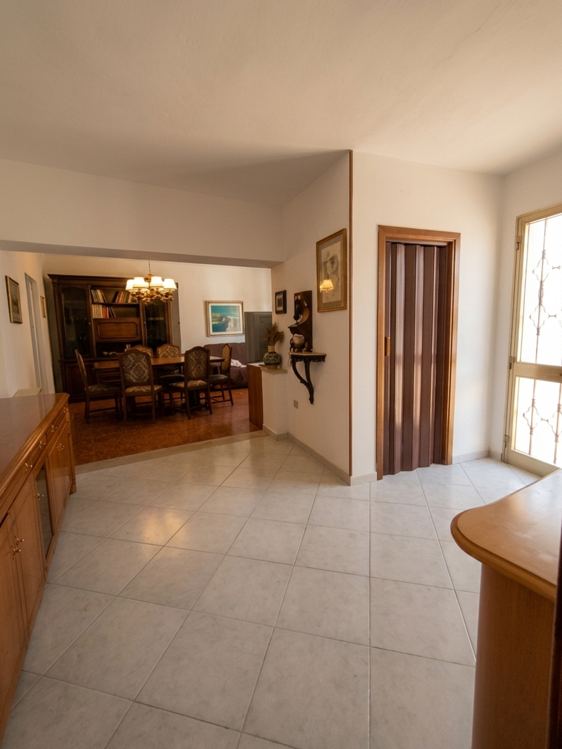 L'ingresso principale, dotato di un comodo ripostiglio, conduce poi a un ampio e luminoso soggiorno.