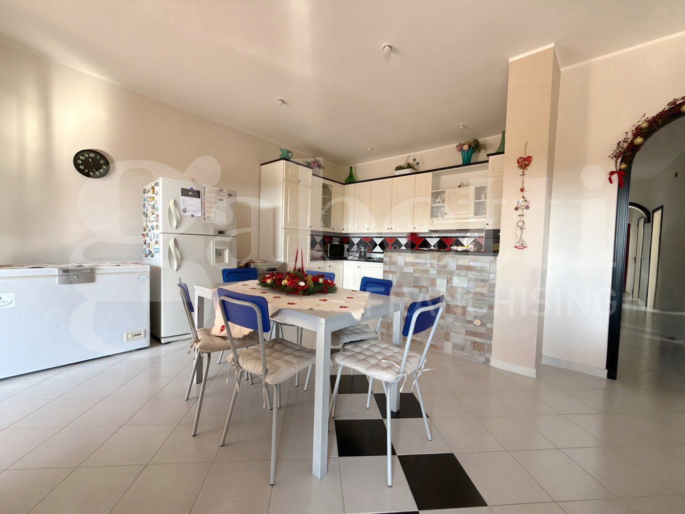 Lingresso conduce a un open space soggiornocucina ampio e luminoso, uno spazio concreto, funzionale, pensato per essere vissuto ogni giorno senza compromessi.