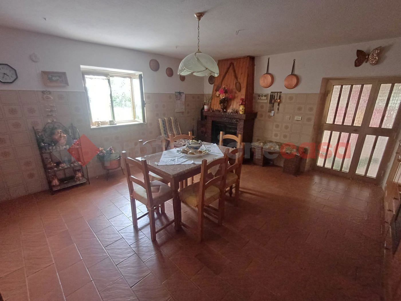 L'abitazione arredata, arricchita da un suggestivo camino che crea un'atmosfera accogliente e calda.
