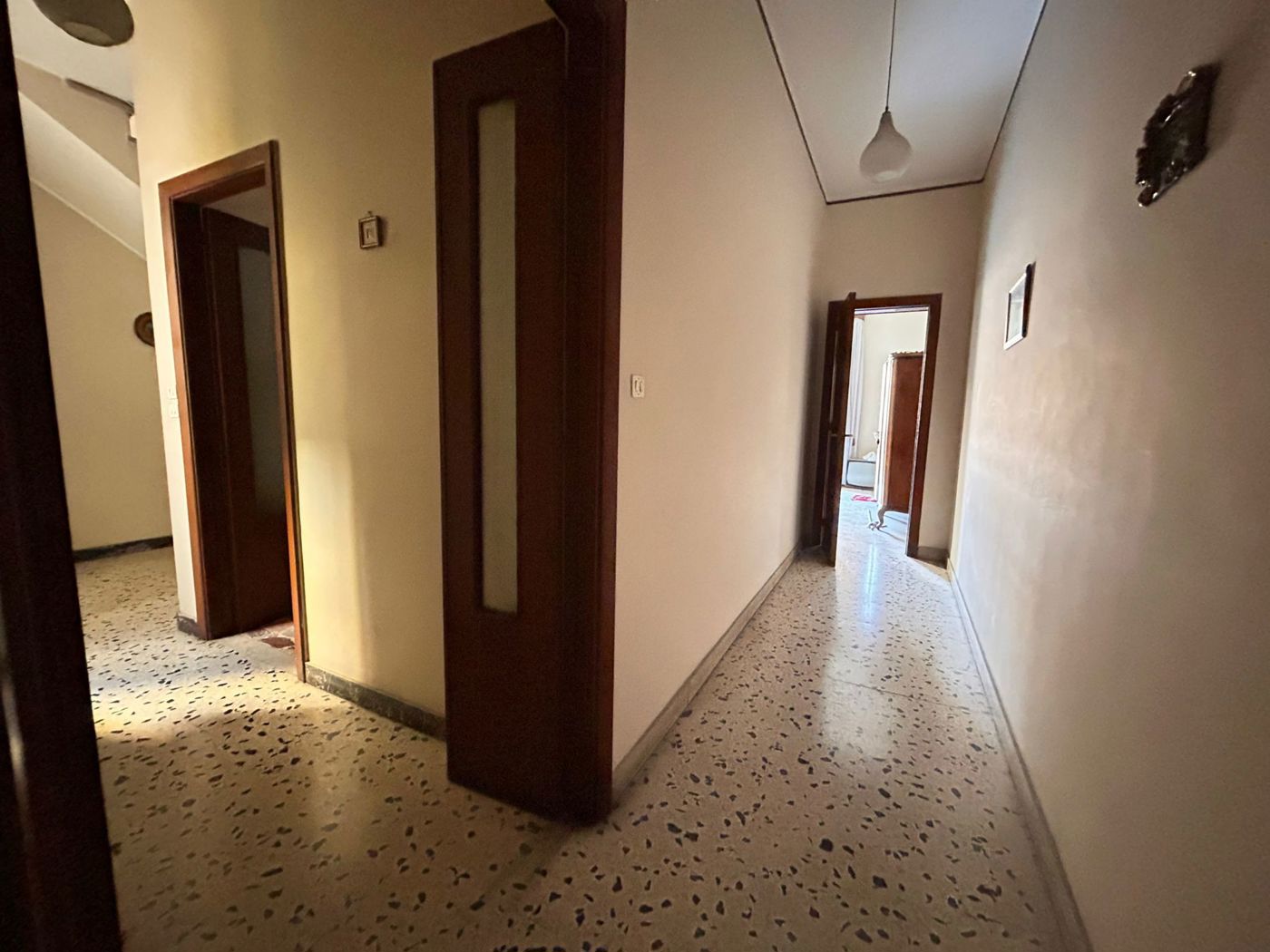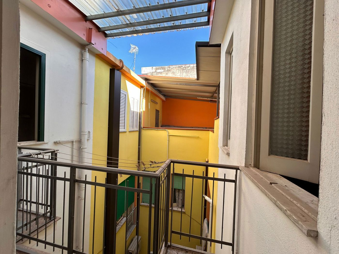 Caratterizzato da doppio ingresso indipendente al piano terra, l'immobile si sviluppa al piano terra ( ingresso, 3 vani, cucina, bagno e pozzo luce), al primo piano (disimpegno, 3 stanze, bagno e balcone), al secondo piano (cucina, 2 stanze, bagno e balcone) e lastrico solare con lavanderia.