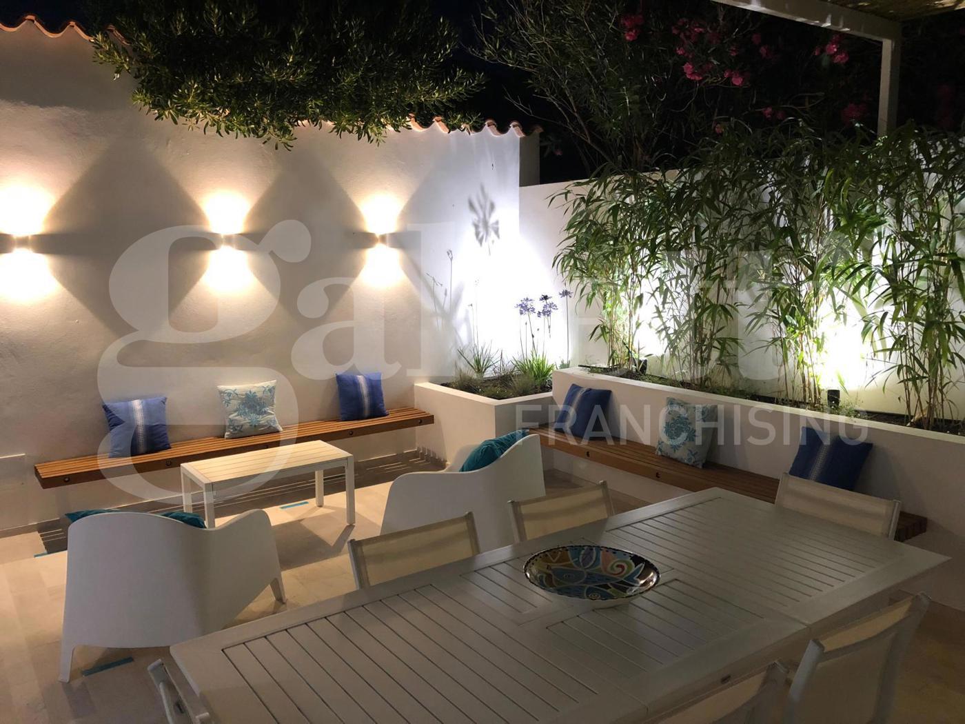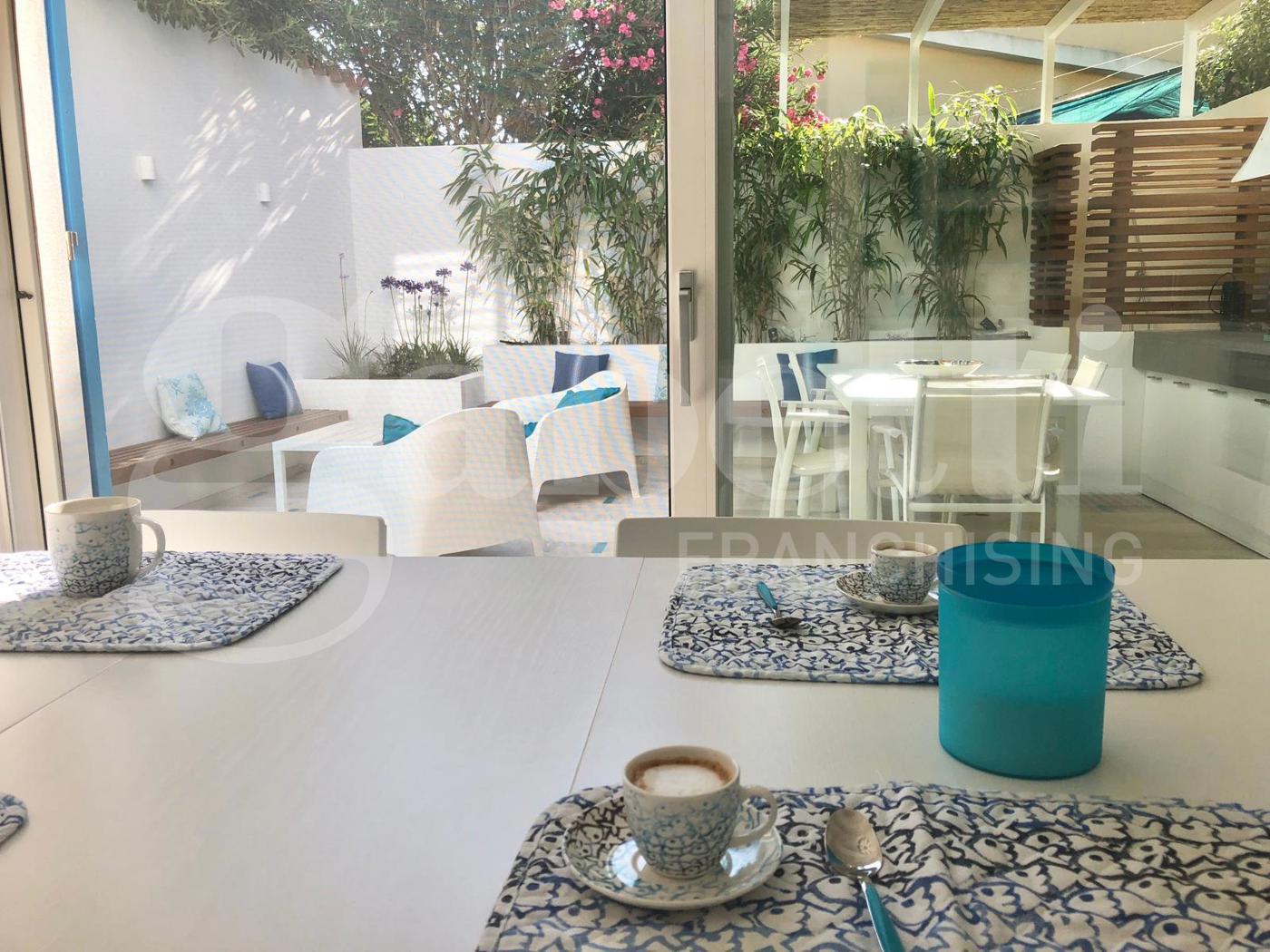 Lo spazio esterno organizzato per trascorrere serate estive all'aperto, ideale per godersi il clima del Sinis.
