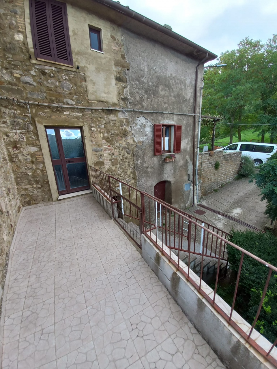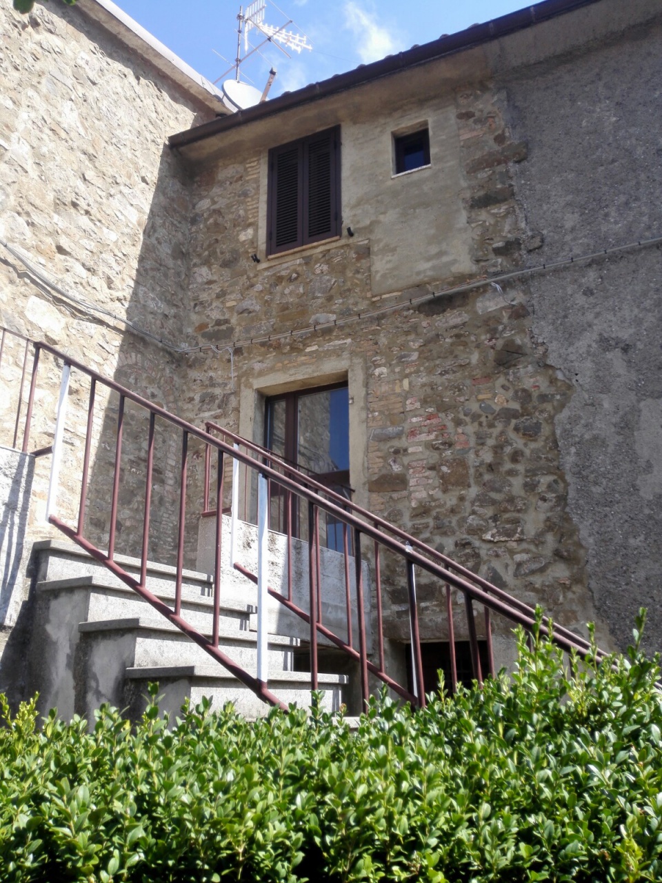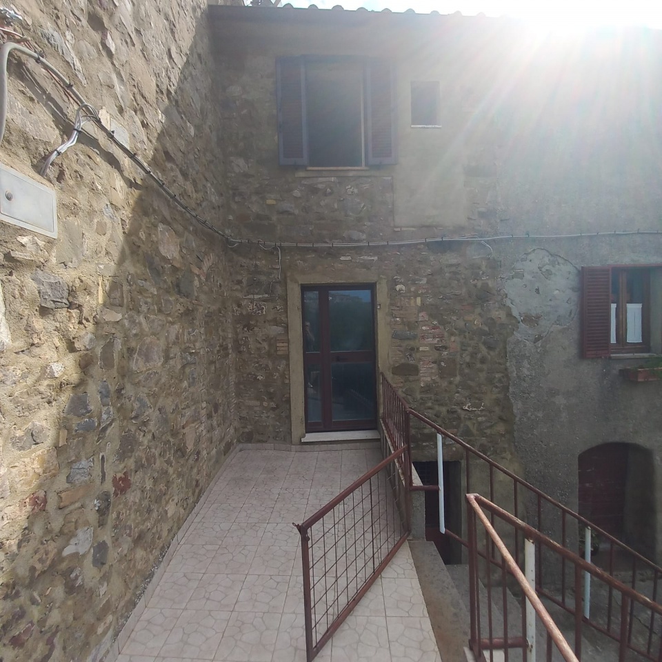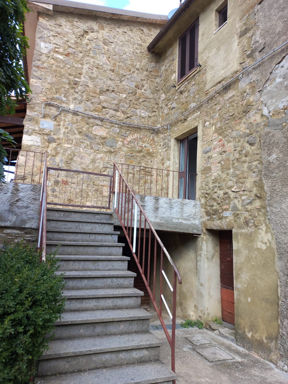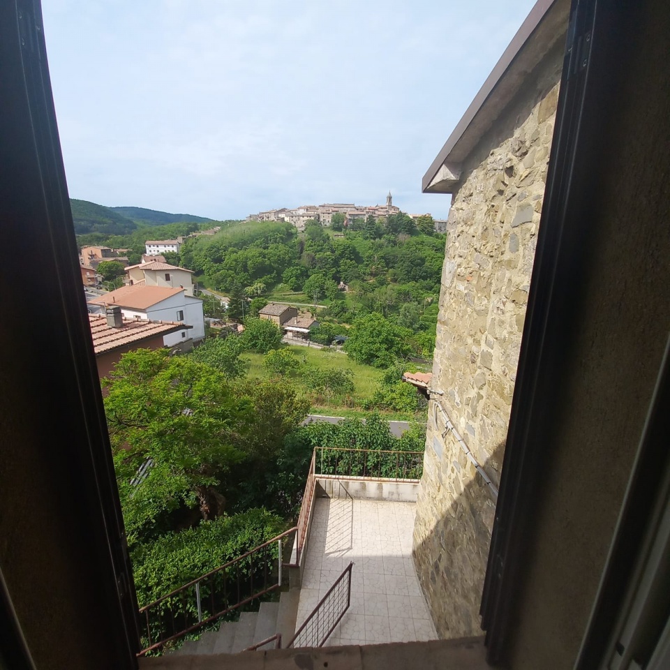 Cinigiano Monticello Amiata posizione molto panoramica Collina adiacente Monte Amiata in abbricato bifamiliare con ingresso indipendente zona Amiata a quota 800 s.l.m. in zona fresca e soleggiata panoramica circondata dal verde Grazioso appartamento con: al piano terreno due stanze ad uso magazzino piano primo con scala esterna indipendente , soggiorno con angolo cottura ,camera; al piano superiore altra camera con bagno.