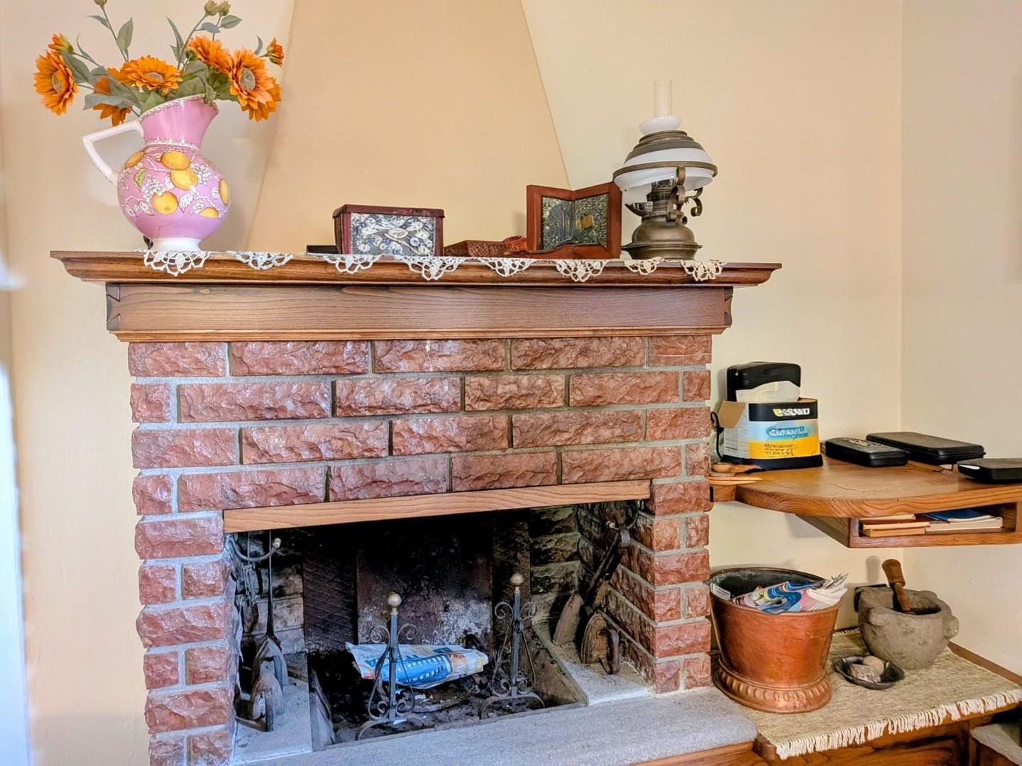 Proseguendo all'esterno, la proprietà offre una legnaia e un locale adibito a lavanderia, arricchito da un antico camino.
