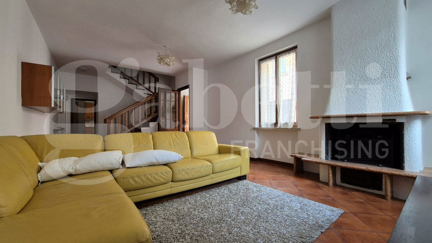 Distribuita su pi livelli, presenta al piano terra un ampio living con camino ed accesso al cortile privato (da cui si accede ad un locale lavanderia esterno), cucina abitabile ed un primo bagno finestrato.