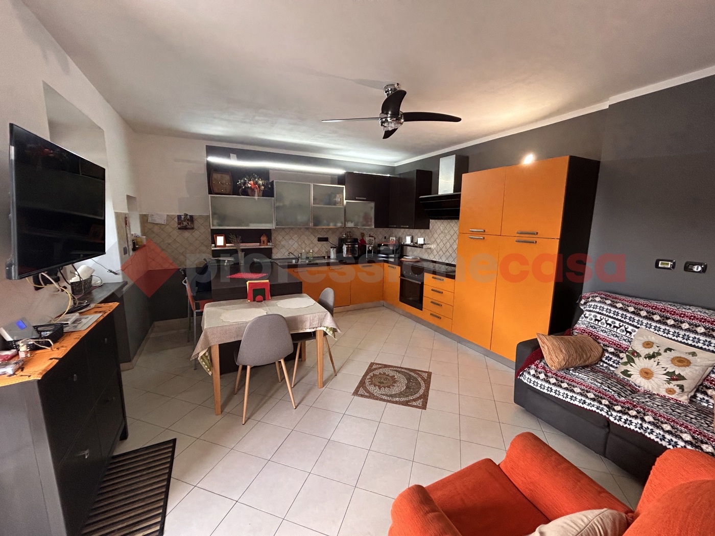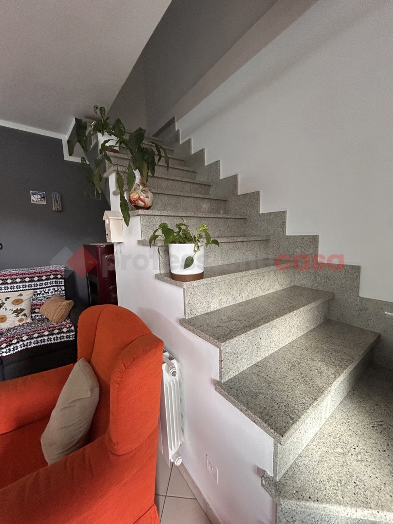 Tramite scala esterna si accede al primo piano, dove si sviluppa la zona giorno composta da un luminoso ingresso living con cucina a vista, ambiente accogliente e ben organizzato, perfetto per la vita quotidiana e per momenti conviviali.