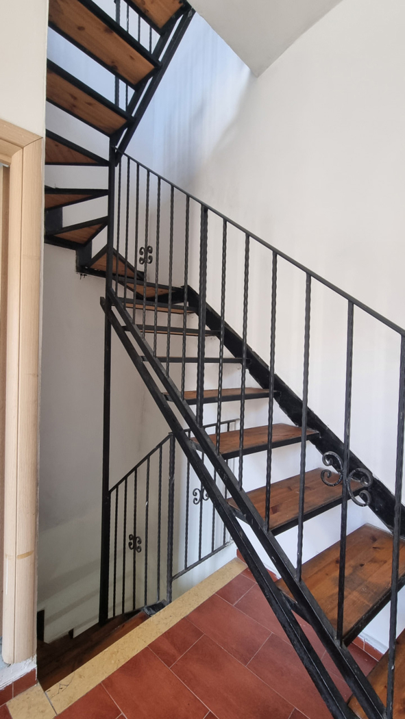 Salendo al primo piano, troverai una cameretta ideale per ospiti o per creare uno spazio studio, un bagno con disposizione per la lavatrice e un balcone che regala una vista sui dintorni.