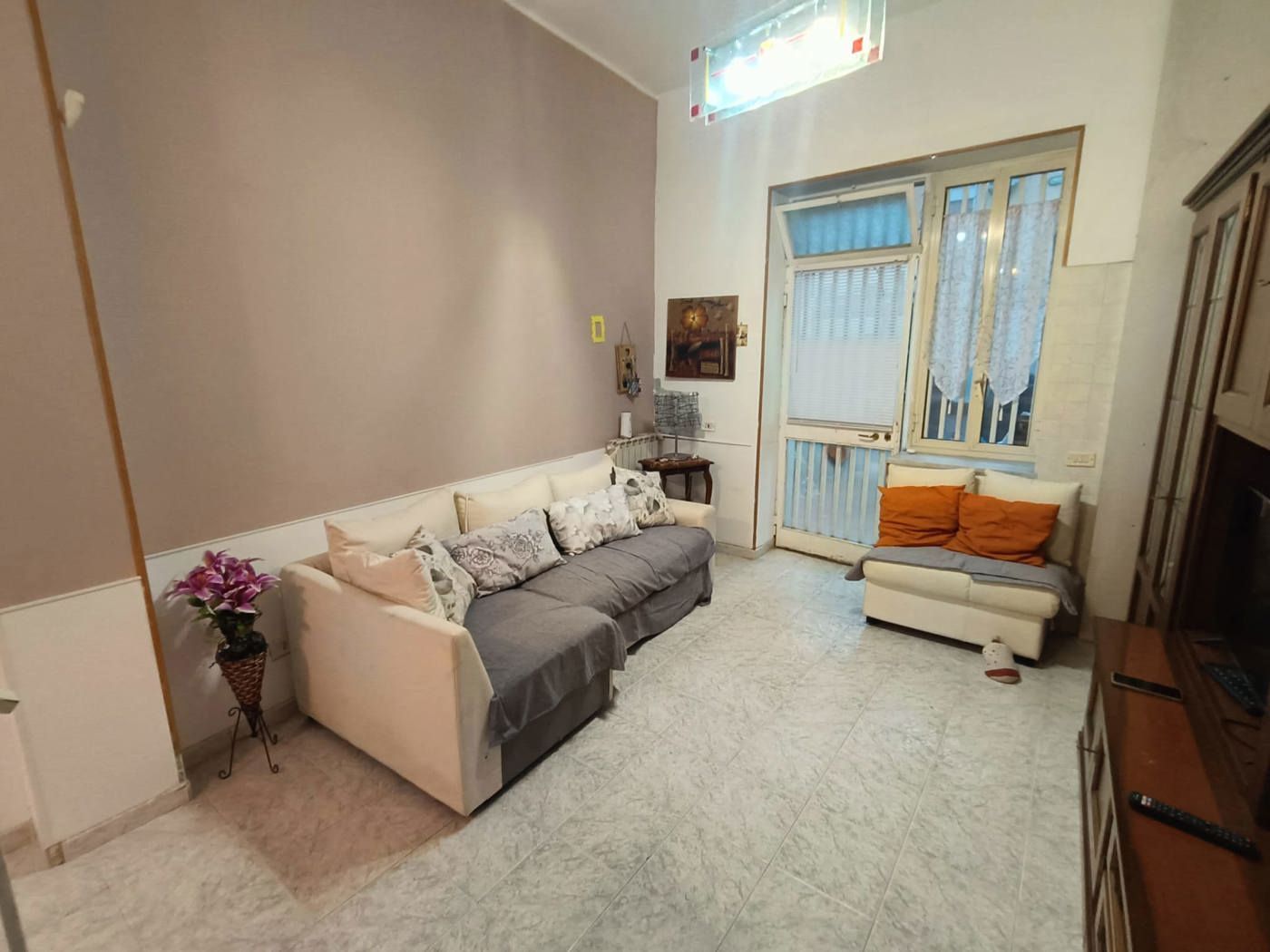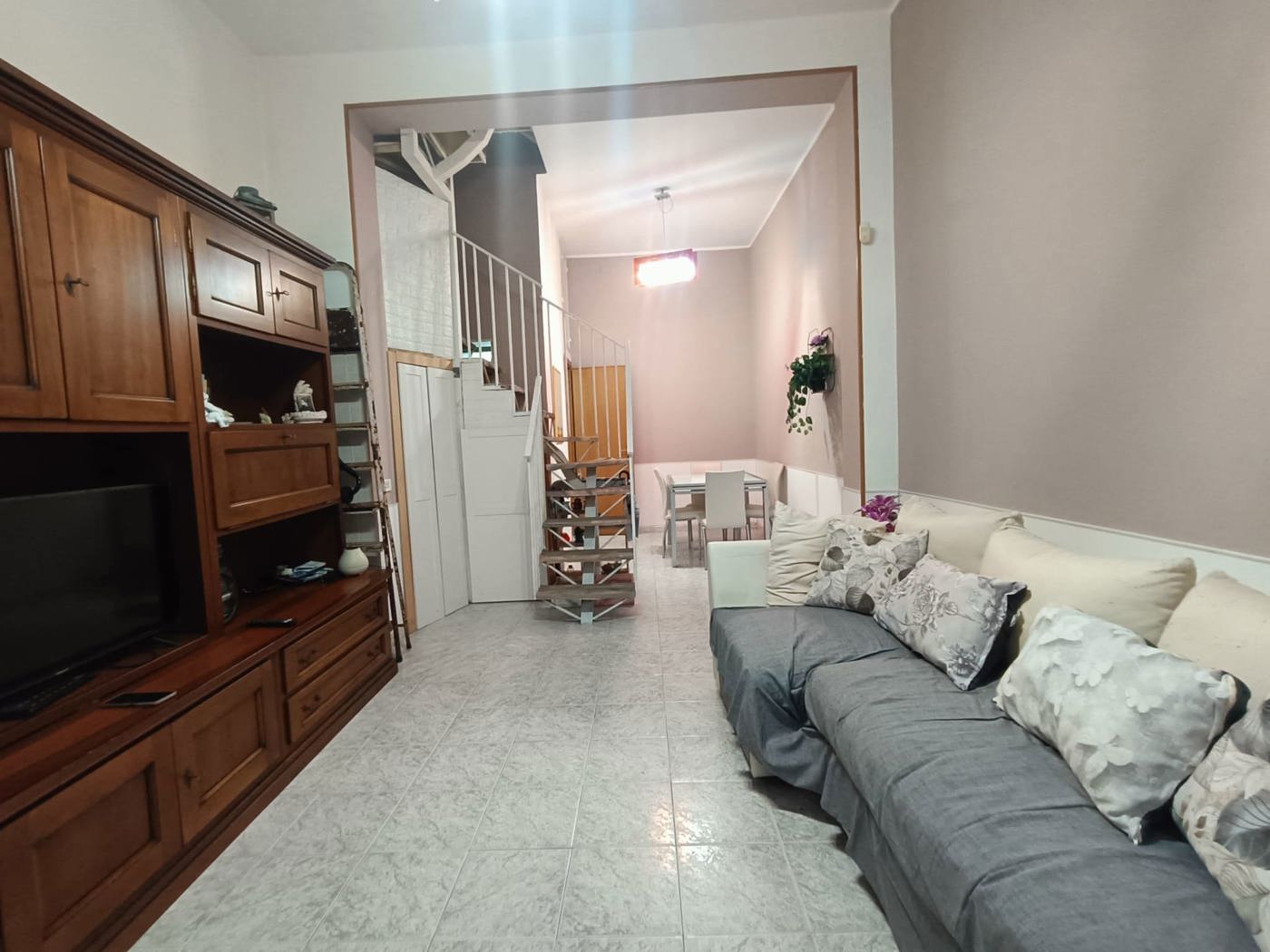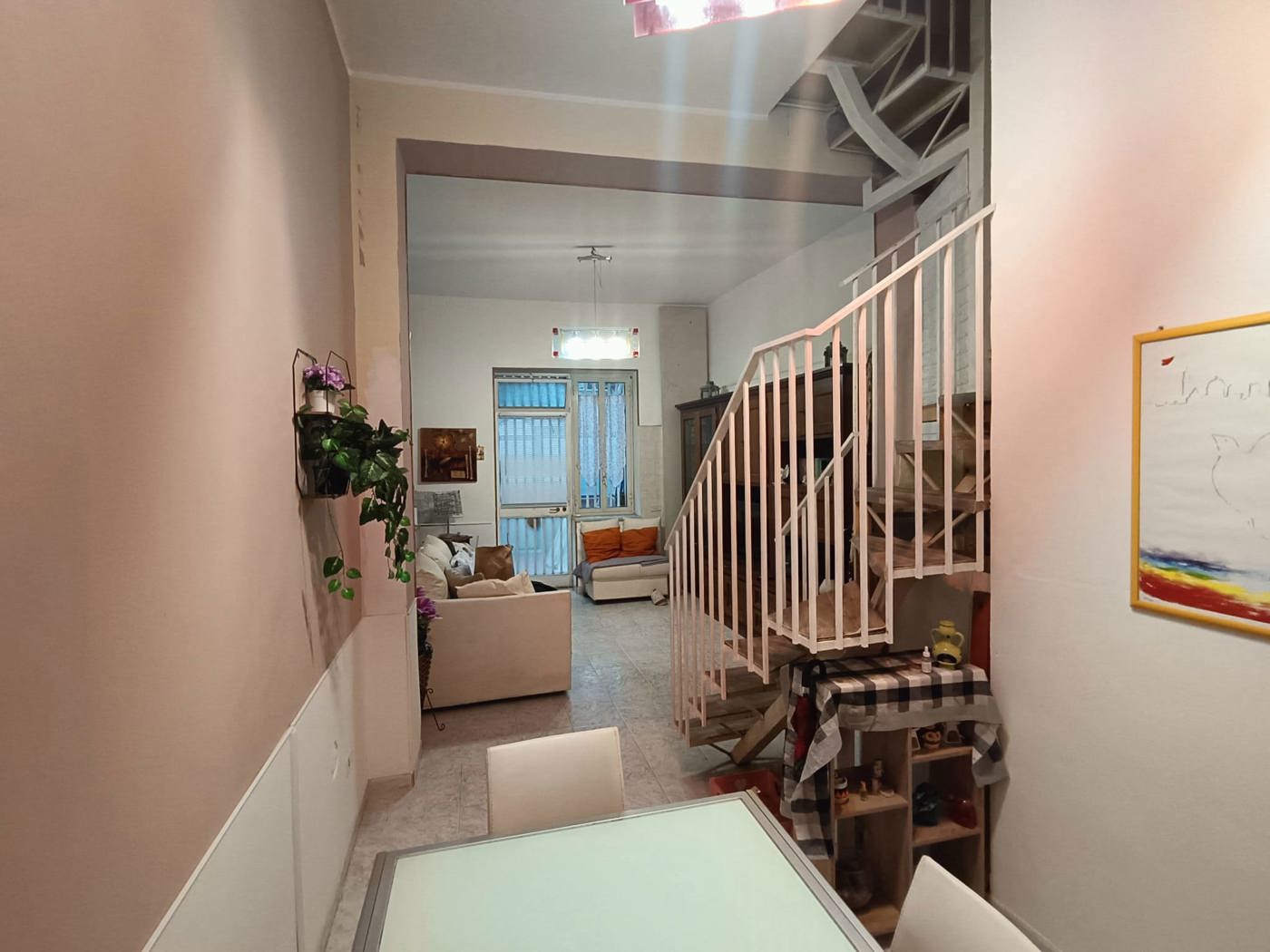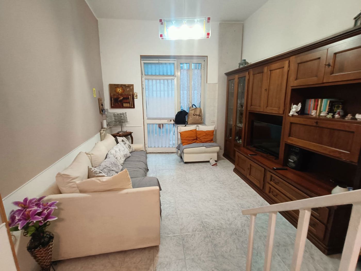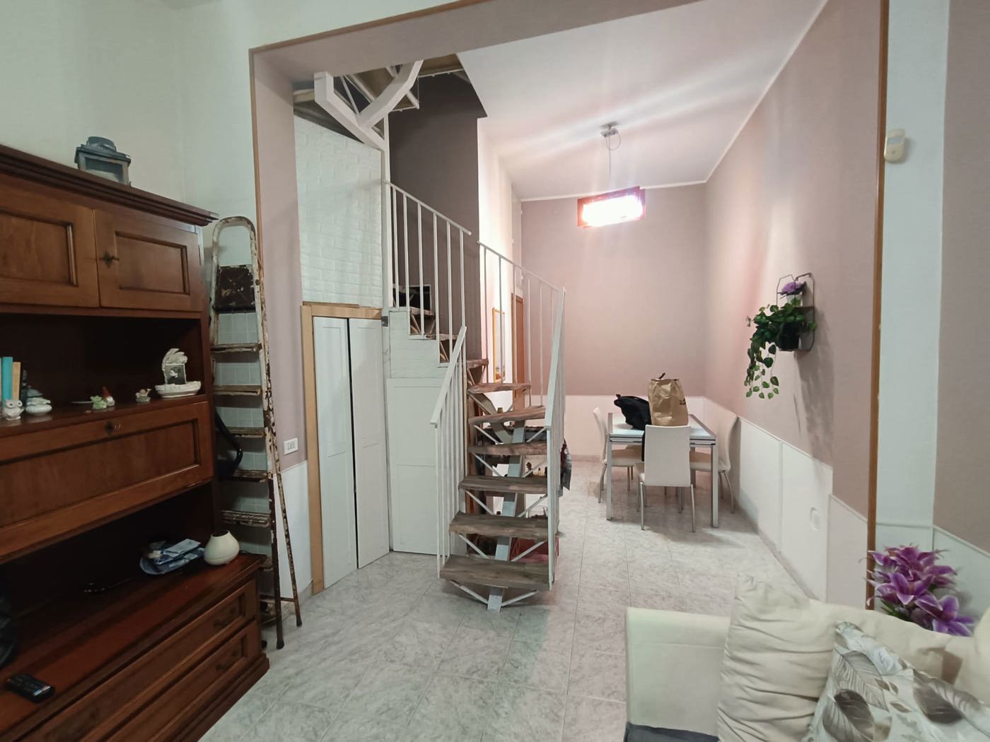Al piano terra ci accoglie una verandina, un ampia zona giorno con allacci per un eventuale cucina ed un servizio.