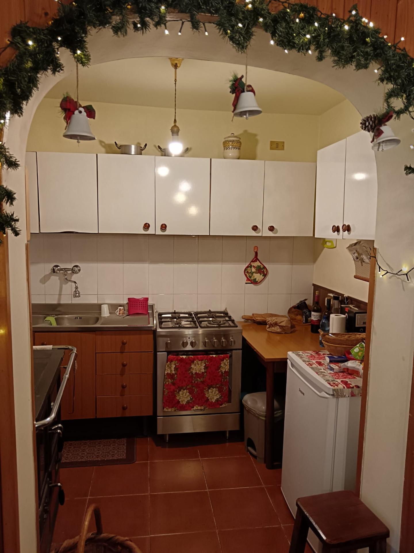 E' composto da: al piano terra da soggiorno, cucinotto con stufa a legna che riscalda tutta l'abitazione con i radiatori, ripostiglio e bagno.