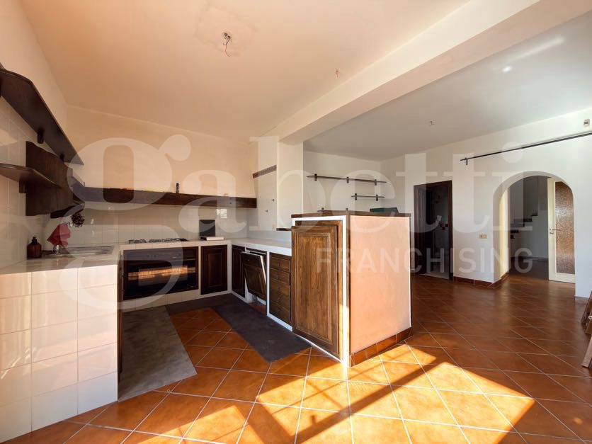 Il piano inferiore composto da ingresso in disimpegno, accogliente zona giorno con cucina in muratura completamente attrezzata, zona pranzo con camino, camera da letto, bagno di servizio e ampio terrazzo a livello ideale per momenti di relax allaperto.