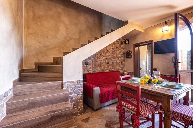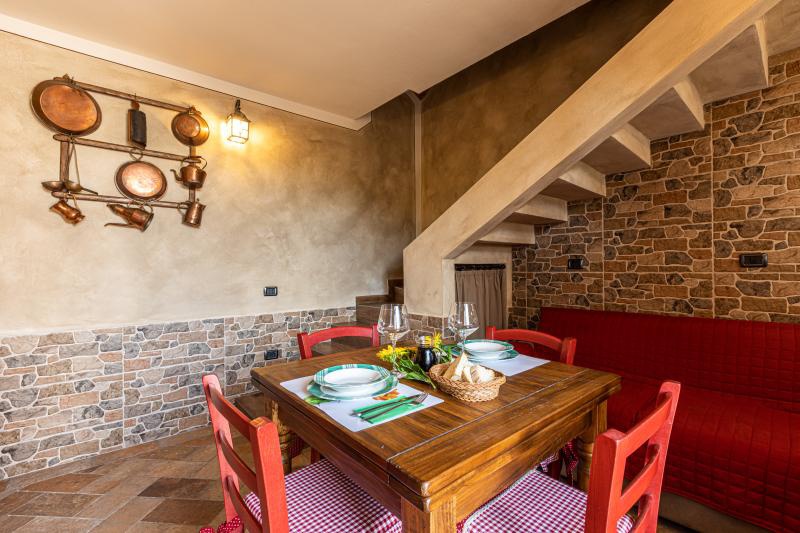 L'abitazione è così strutturata: piano terra con zona giorno-cucina in muratura ed arredo rustico, bagno arricchito con dettagli caratteristici e dotato di tutti i servizi; primo piano con camera da letto, arredata anch'essa in stile rustico ed impreziosita da dettagli e particolari caratteristici.