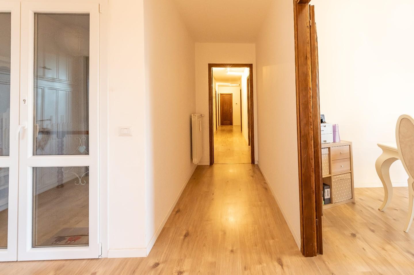 Primo piano: - luminoso open space con zona living, cucina con isola e accesso diretto al balcone con vista sul giardino; - ulteriore soggiorno/sala da pranzo con balconcino; - zona notte composta da tre camere matrimoniali (di cui una con affaccio su balcone) e una cameretta (attualmente adibita a zona lavanderia) con accesso a un ampia terrazza abitabile di circa 200 mq. - due bagni: uno completamente ristrutturato in stile moderno e laltro, più ampio, in stile classico anni 70. - lungo corridoio con eleganti armadi a muro; Secondo piano: grande mansarda di circa 46 mq, riscaldata con termosifoni, perfetta come ulteriore zona living, camera/studio o spazio polifunzionale.