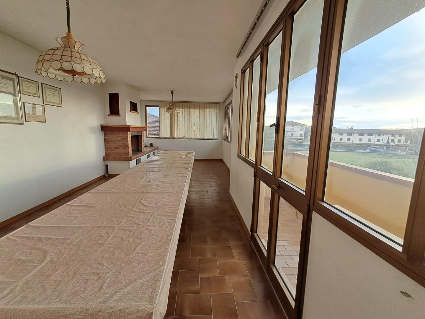 L'immobile si sviluppa su una superficie di 140 mq e si compone di 6 locali; piano terra: ingresso indipendente locale pluriuso garage comunicante di ampia metratura resede su tre lati ripostiglio sotto scale piano primo: cucinotto soggiorno/pranzo con balcone camera matrimoniale camera doppia con balcone bagno finestrato secondo piano: ampio terrazzo verandato con il camino funzionante e vista panoramica sul verde . Lo stato attuale è da rivedere, offrendo così l'opportunità di personalizzare e modernizzare gli spazi secondo le proprie esigenze.
