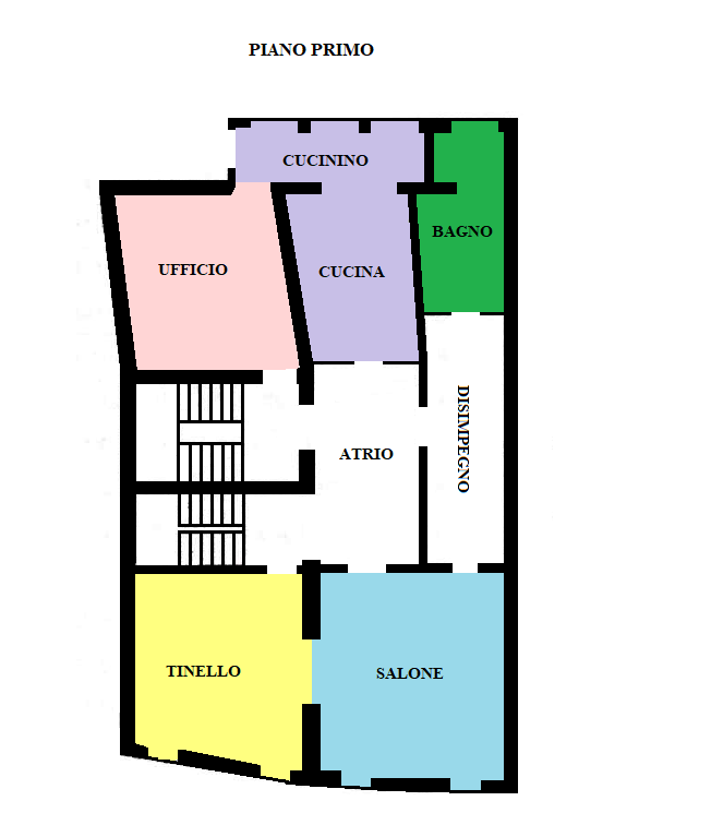 Il piano terra troviamo l ingresso composto un corridoio largo 1,10m, le scale che portano al piano superiore e successivamente da una cantina, magazzino e la centrale termica.