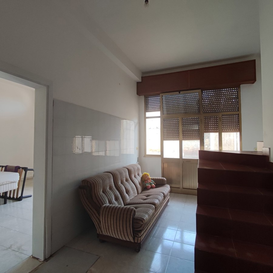 E' composta da ingresso, ampio soggiorno con uscita su un terrazzino a livello che affaccia sullo spazio esterno retrostante, una cucina con camino ed uscita sul terrazzino, tre camere da letto e due bagni.