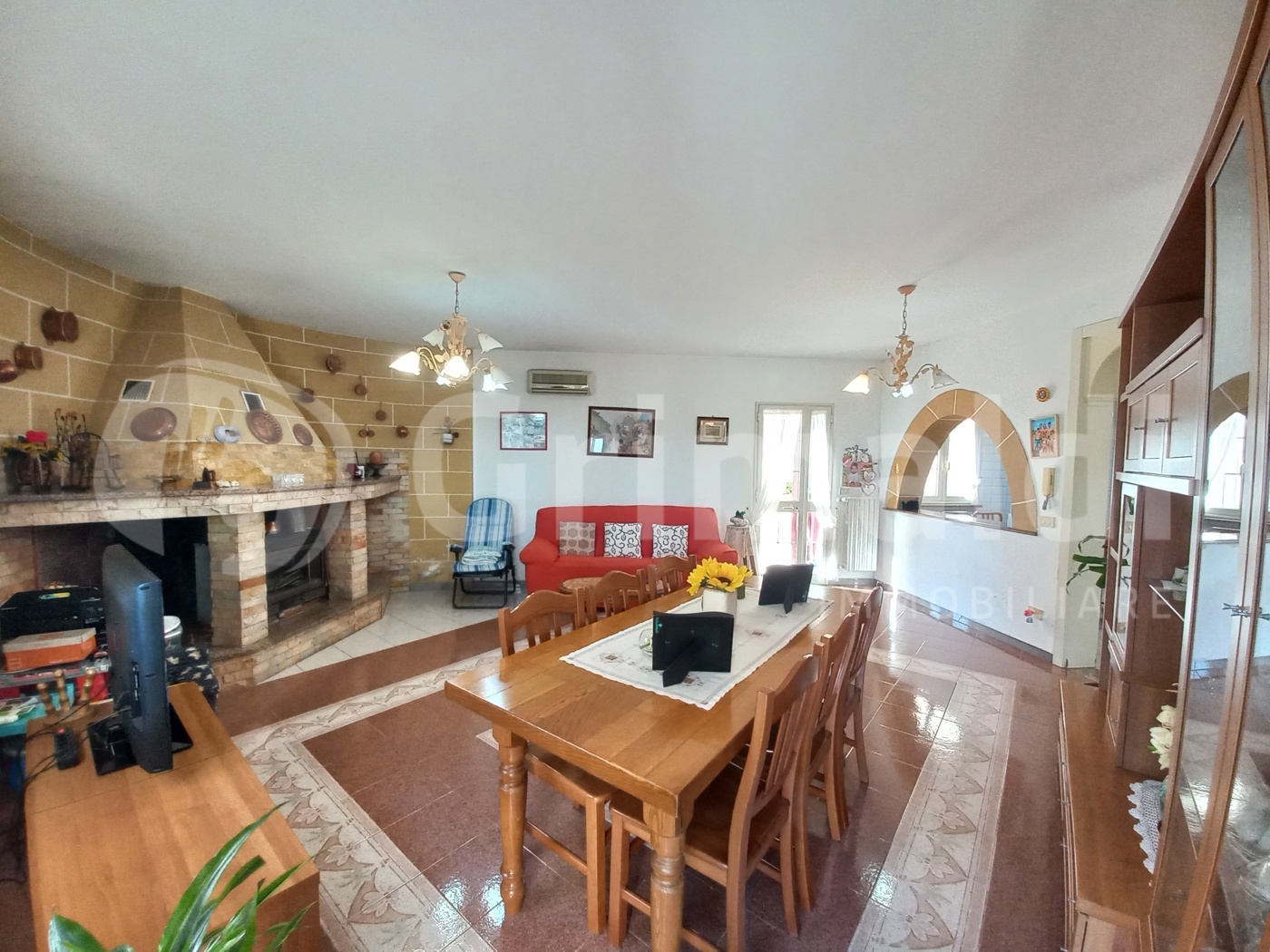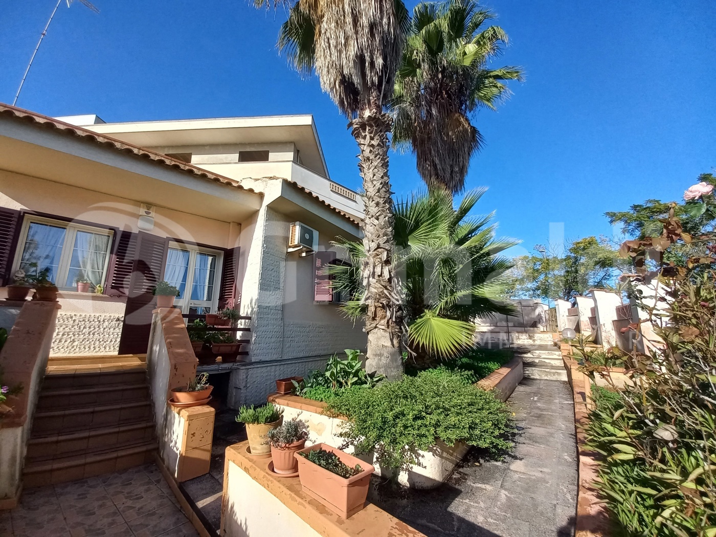 All'esterno per tutto il perimetro abbiamo zone pavimentate ideali per posti auto scoperti, giardino con piante ornamentali e palme, e retrostante grande garage con ripostiglio.