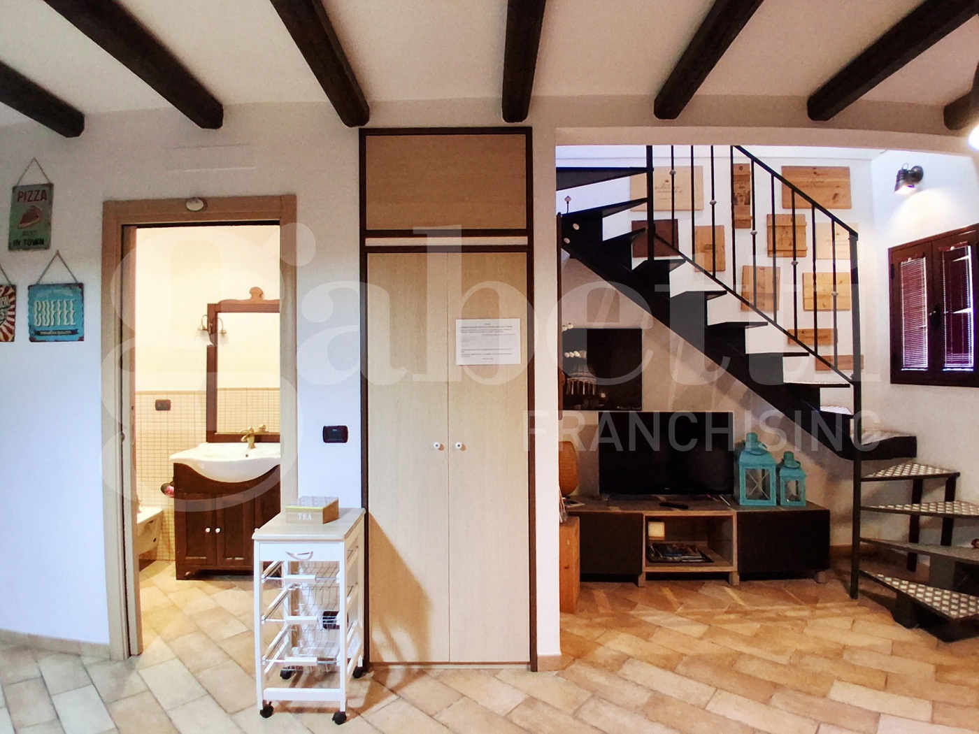 Al piano terra troviamo una spaziosa zona living con cucina a vista e bagno, al primo piano due camere da letto doppie e un bagno.
