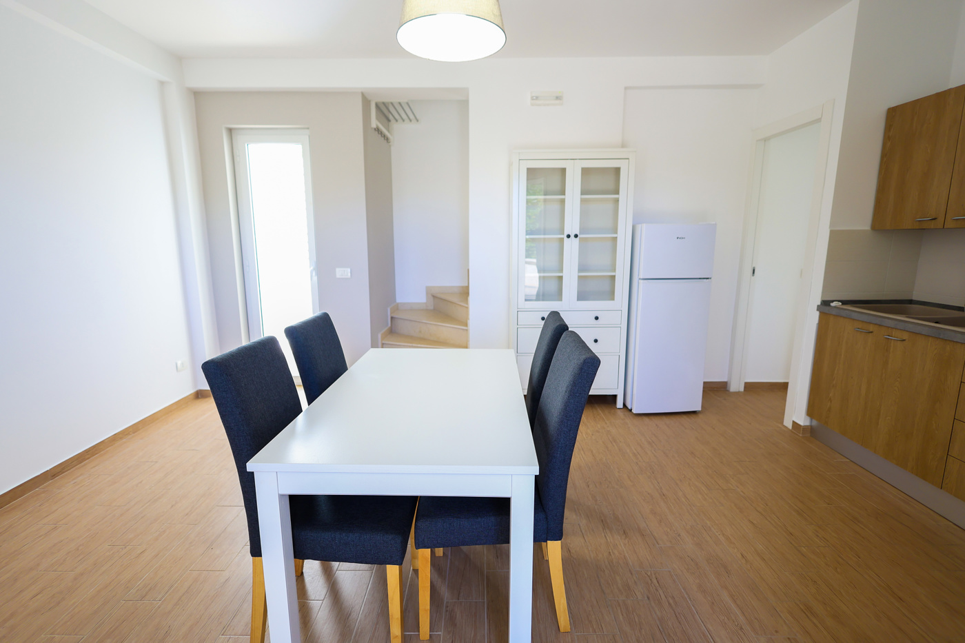 Il villino si compone nel seguente modo: si accede alla villetta da un cortile condominiale in una veranda con giardino di propriet esclusiva, dalla porta d'ingresso al piano terra si accede direttamente al locale soggiorno con cucina a vista, un bagno con antibagno e doccia ed un locale lavanderia.