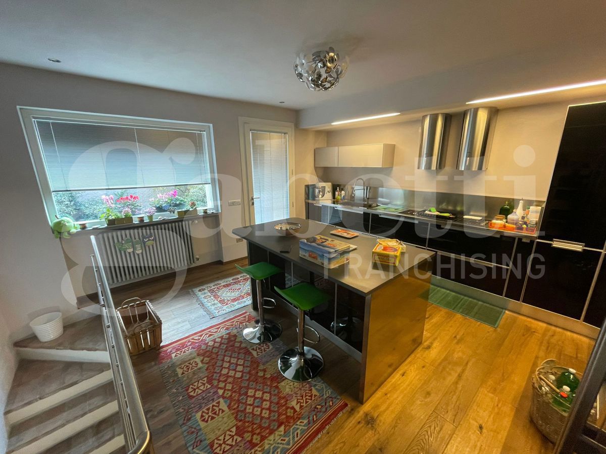Al primo ed ultimo piano, da scala in arredo, si ha accesso alla zona notte composta da una camera matrimoniale con cabina armadio, bagno di 12,44 mq con doccia e vasca, ampio disimpegno uso studio ricavato da demolizione di una precedente camera singola.