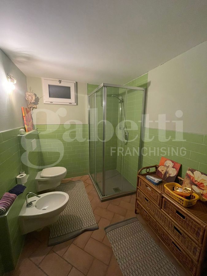 Dalla zona giorno si accede al piano seminterrato di ampie dimensioni dove si sviluppa la zona salotto/ studio con caminetto una stanza con predisposizione per la cucina con dispensa adiacente un vano palestra, bagno, un ripostiglio ed una lavanderia.