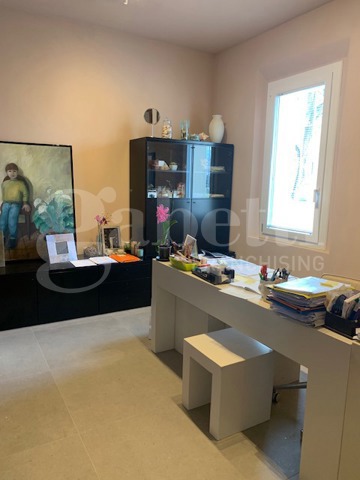 La divisione ottimale degli spazi permette una zona giorno molto confortevole con cucina abitabile arredata e fornita di piano a induzione (non presente Gas)con vetrata a vista sul giardino, salotto accogliente, 2 ripostigli, 1 studio/camera di 14,70mq con bagno adiacente, 2 ampie camere da letto al piano primo, di cui 1 con cabina armadio, e il secondo bagno.