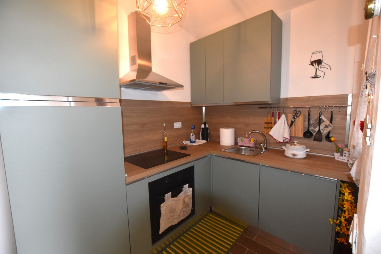 L'abitazione si compone di ingresso/cucina, soggiorno con camino, disimpegno, camera matrimoniale con affaccio sulle colline, bagno con doccia e lucernario.