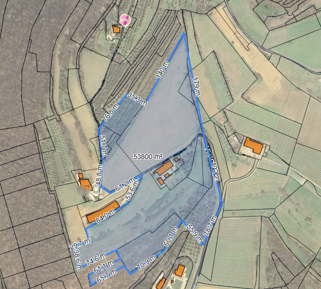 A completare la proprit, la soluzione ha come pertinenza dei terreni di cui bosco e uliveti, per un totale di circa 52400mq.