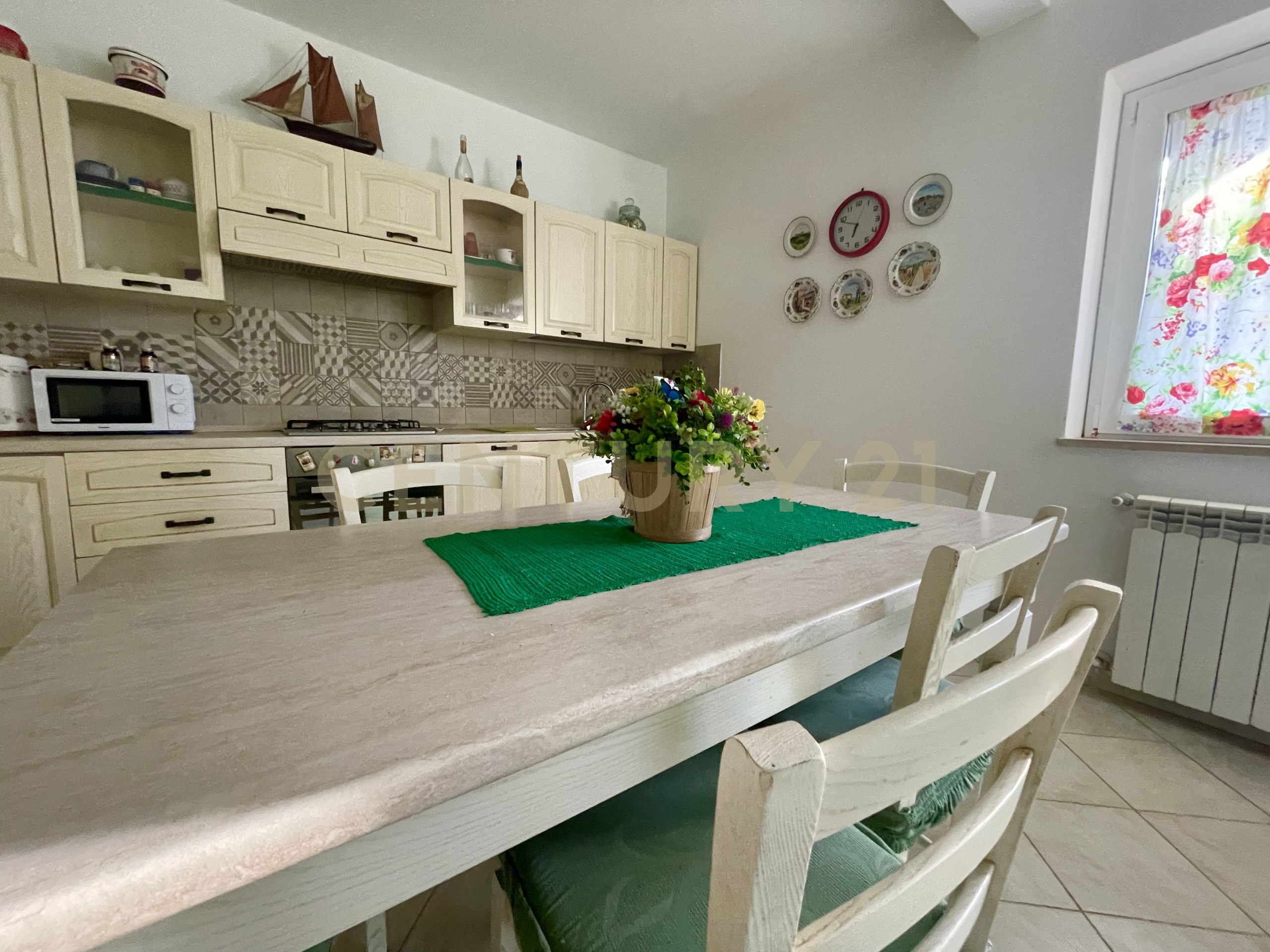 Distribuzione interna Lingresso accompagna verso una cucina abitabile di generose dimensioni, completa di dispensa separata: uno spazio pensato per la convivialità e la vita quotidiana.